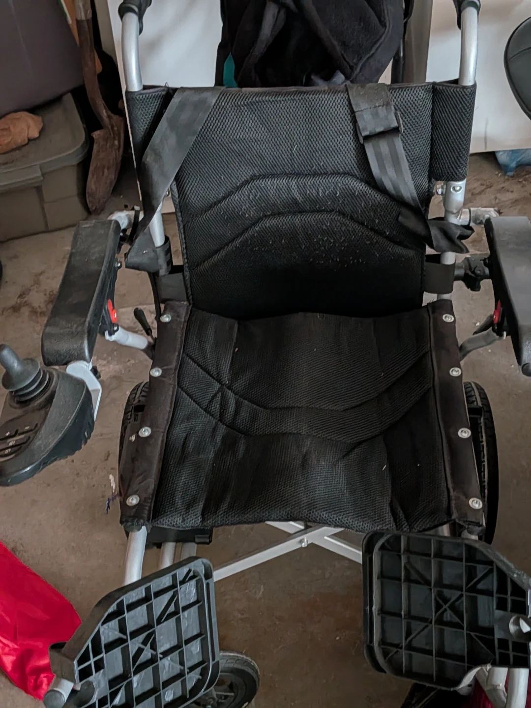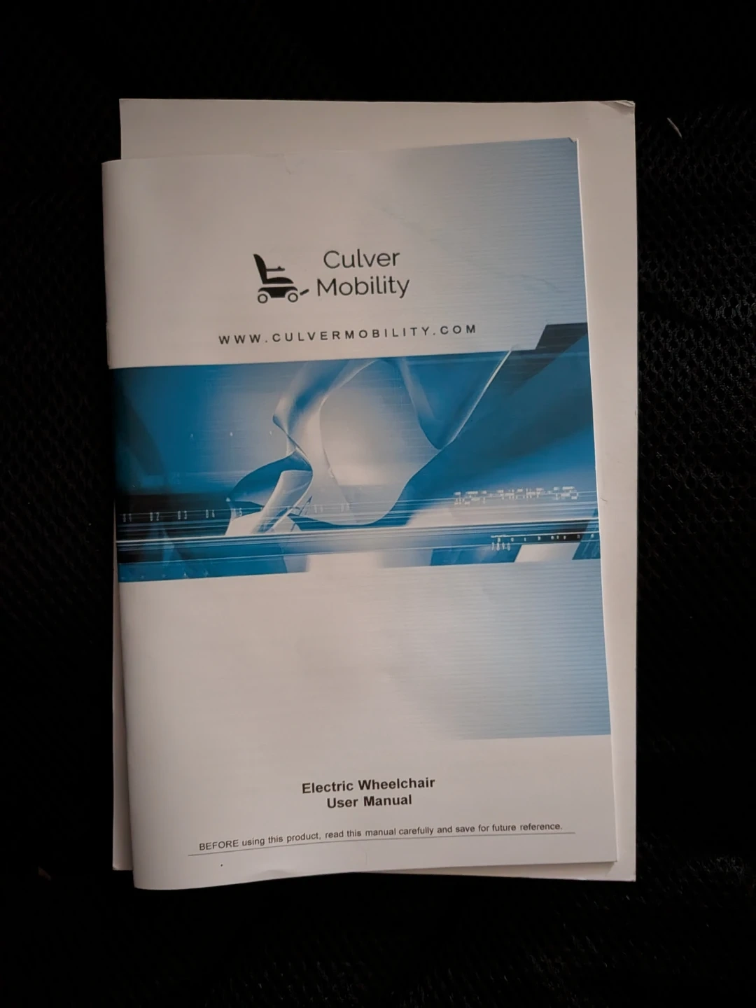 Electric wheelchair from Culver Mobility. Includes a user manual. Powered joystick for control. It's black with a durable fabric seat and footrests.$ 500 obo