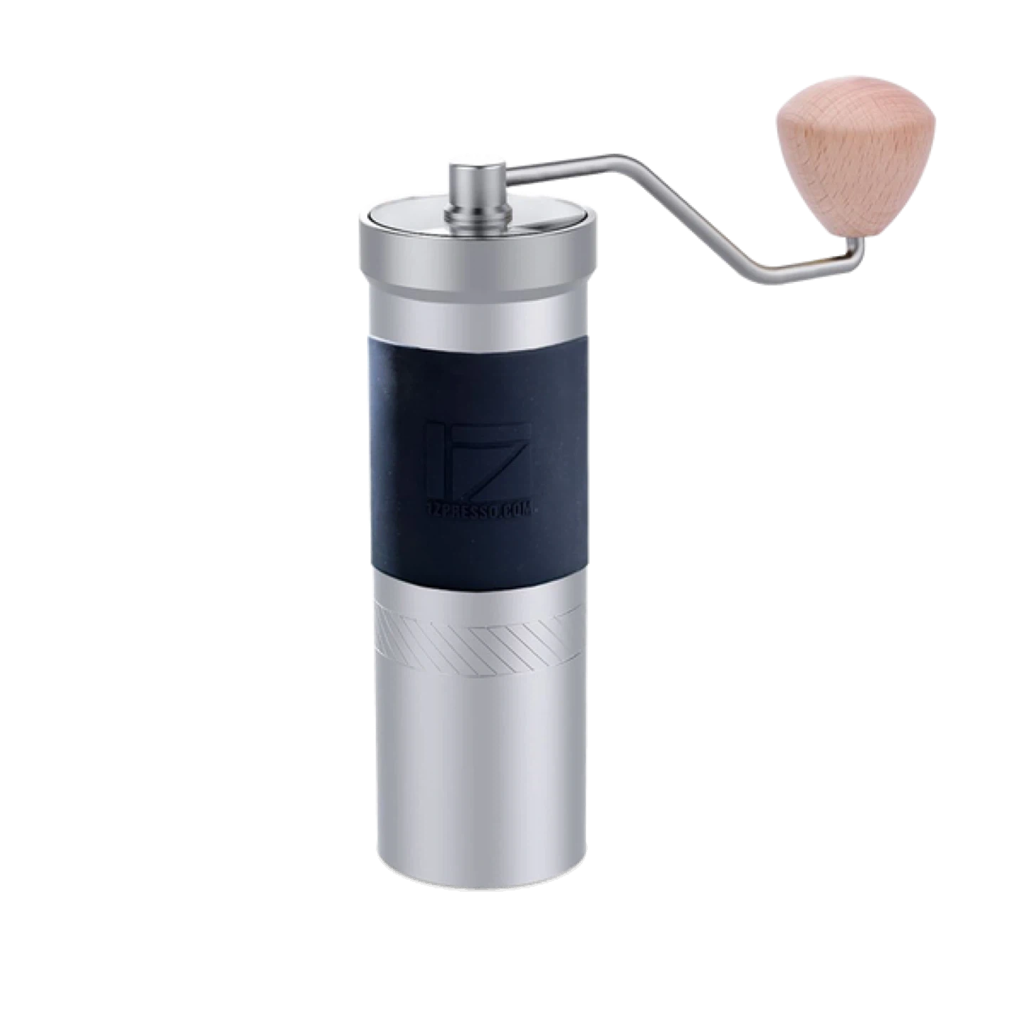 This C2 MAX coffee grinder features a stainless steel body and an anti-slip rubber grip. It has a high-quality burr for consistent grounds. The crank handle includes a smooth wooden knob for easy operation. Perfect for grinding beans for your favourite brew!