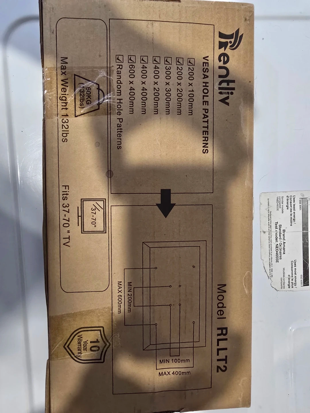 This Frentiv TV wall mount supports VESA hole patterns from 200x100mm up to 600x400mm. It fits TVs from 37 to 70 inches and has a max weight capacity of 132lbs. The mount includes a 10-year warranty.