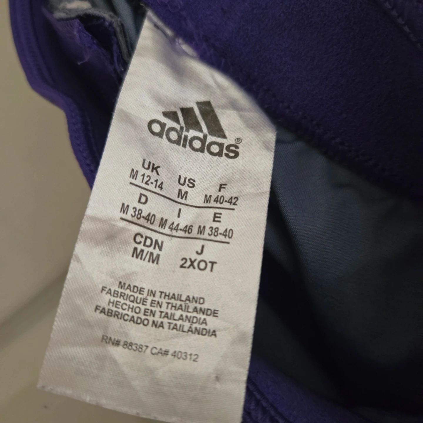 These Adidas Techfit capri leggings are purple with a subtle patterned design. They feature a zippered pocket at the back for essentials.