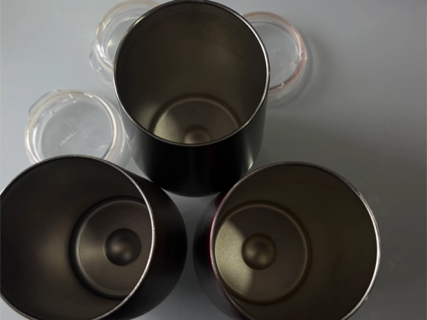Set of 3 Stemless Wine Tumblers with Lids - Red, Black, and Gold