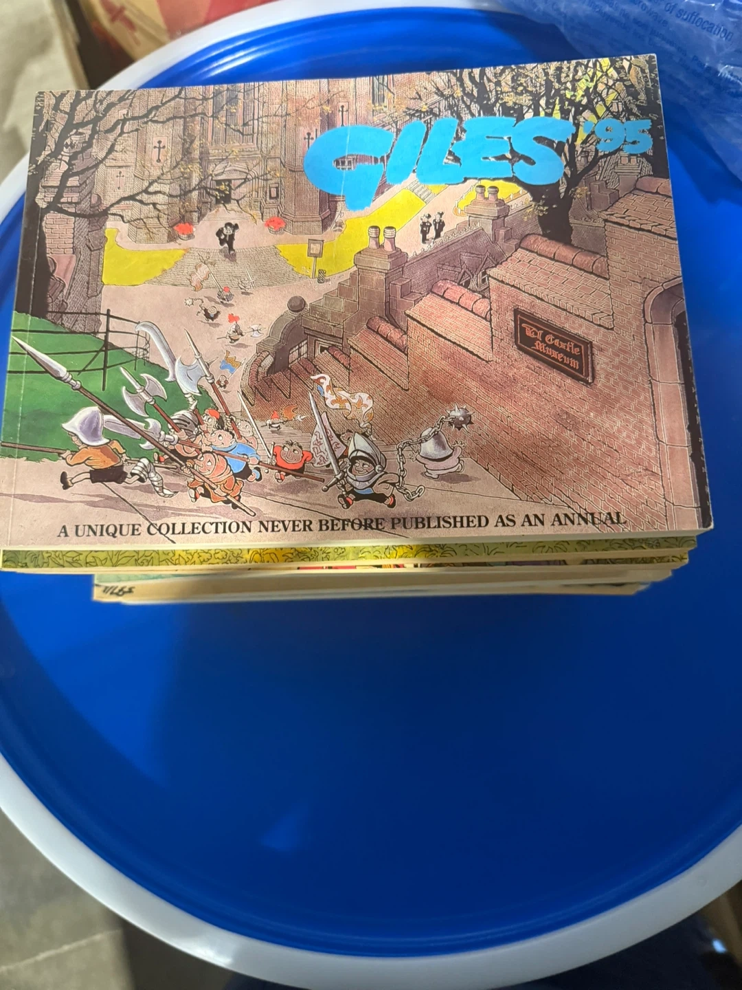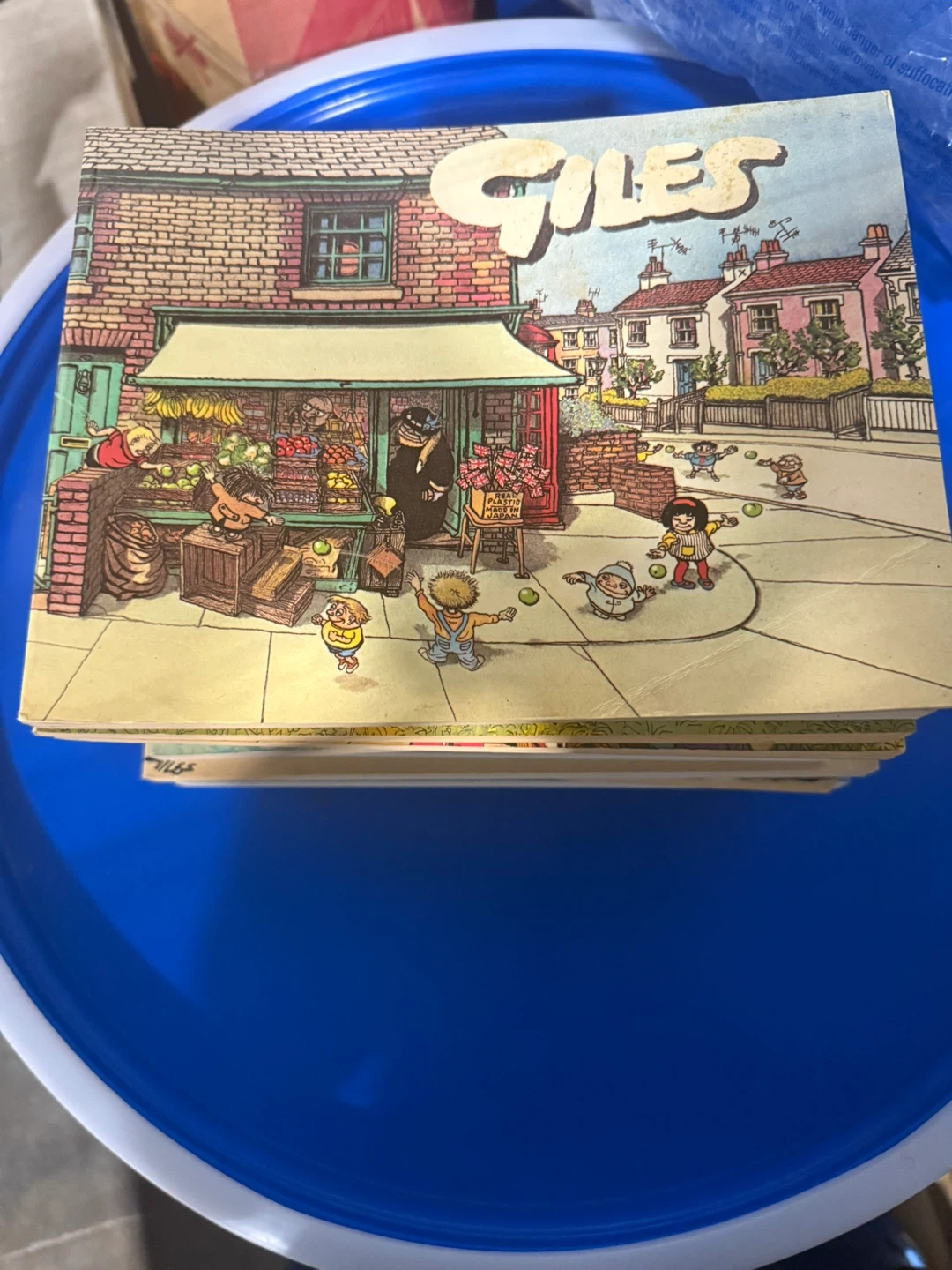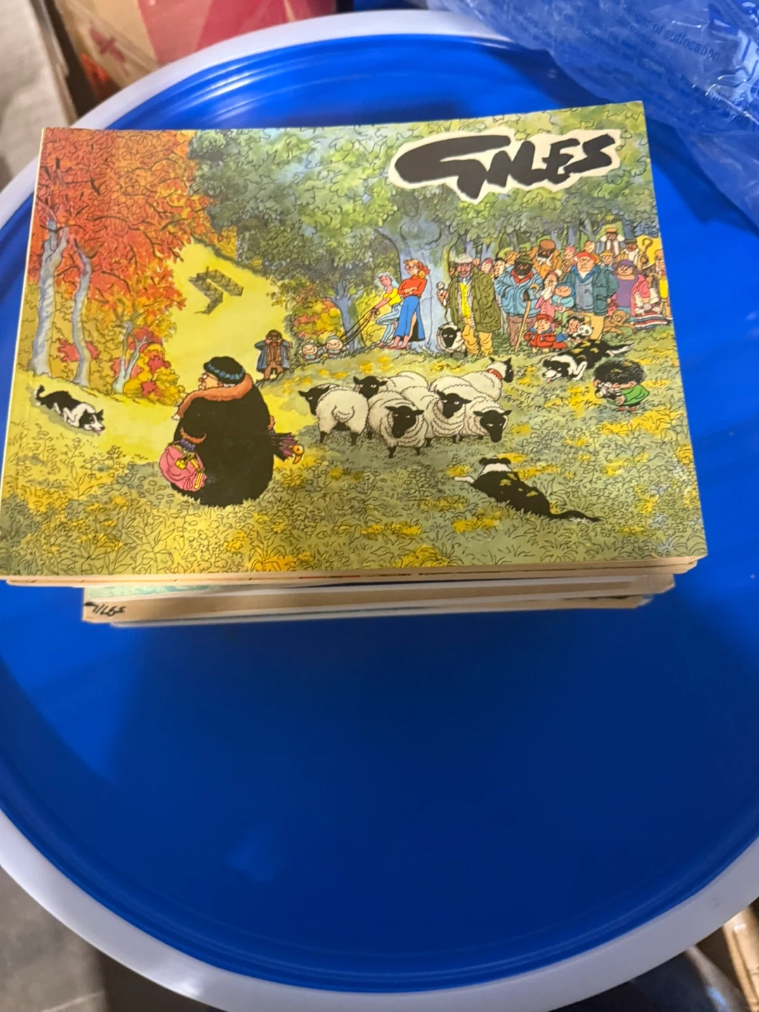 $10 each This is a collection of Giles comic books, featuring humorous British cartoons. They're great for fans of classic comic strips. The books showcase a unique art style and witty observations of everyday life.