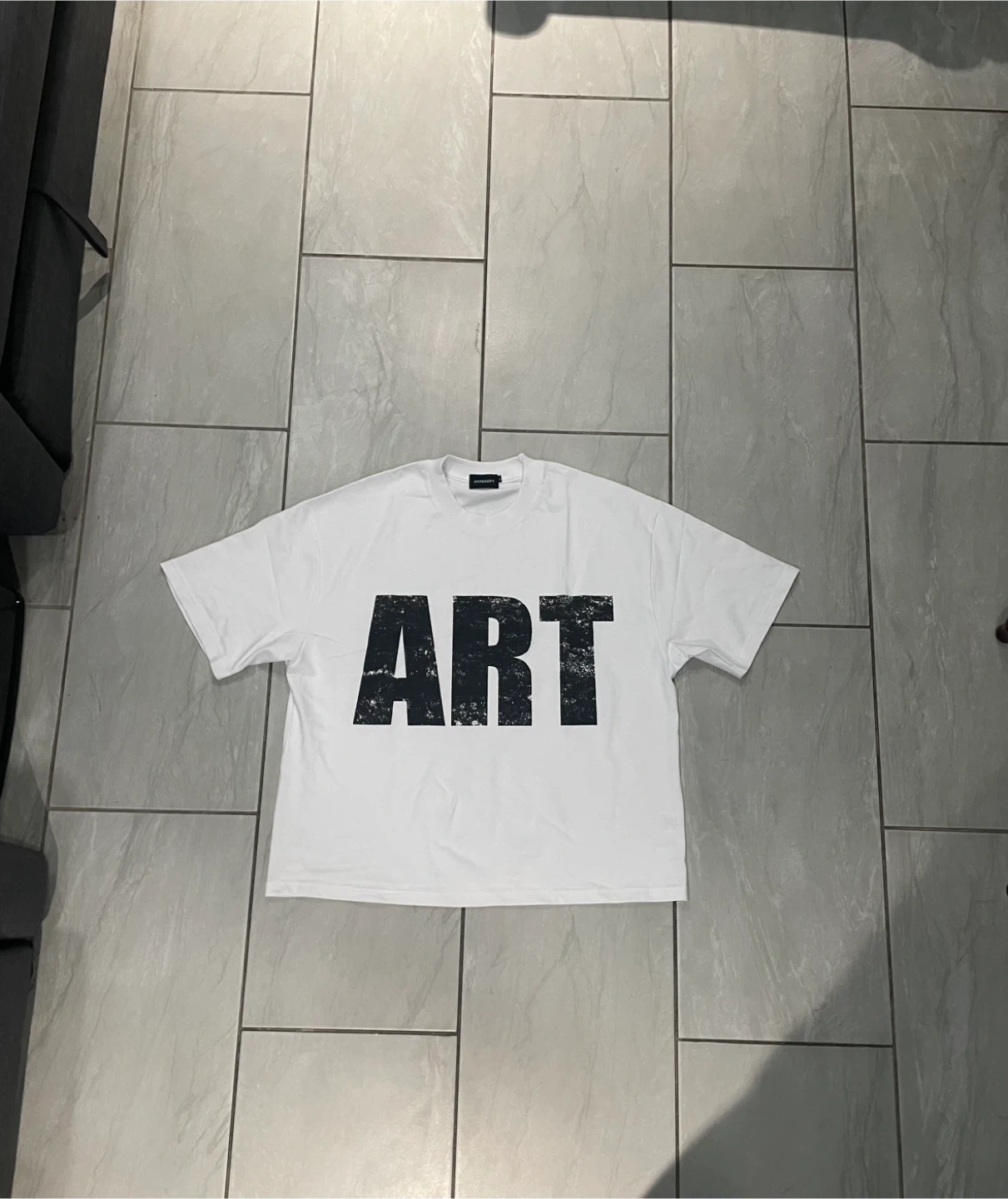 Selling a white t-shirt with a bold "ART" graphic on the front.Boxy cropped design plus heavy weight and It's in great condition and ready for a new wardrobe!