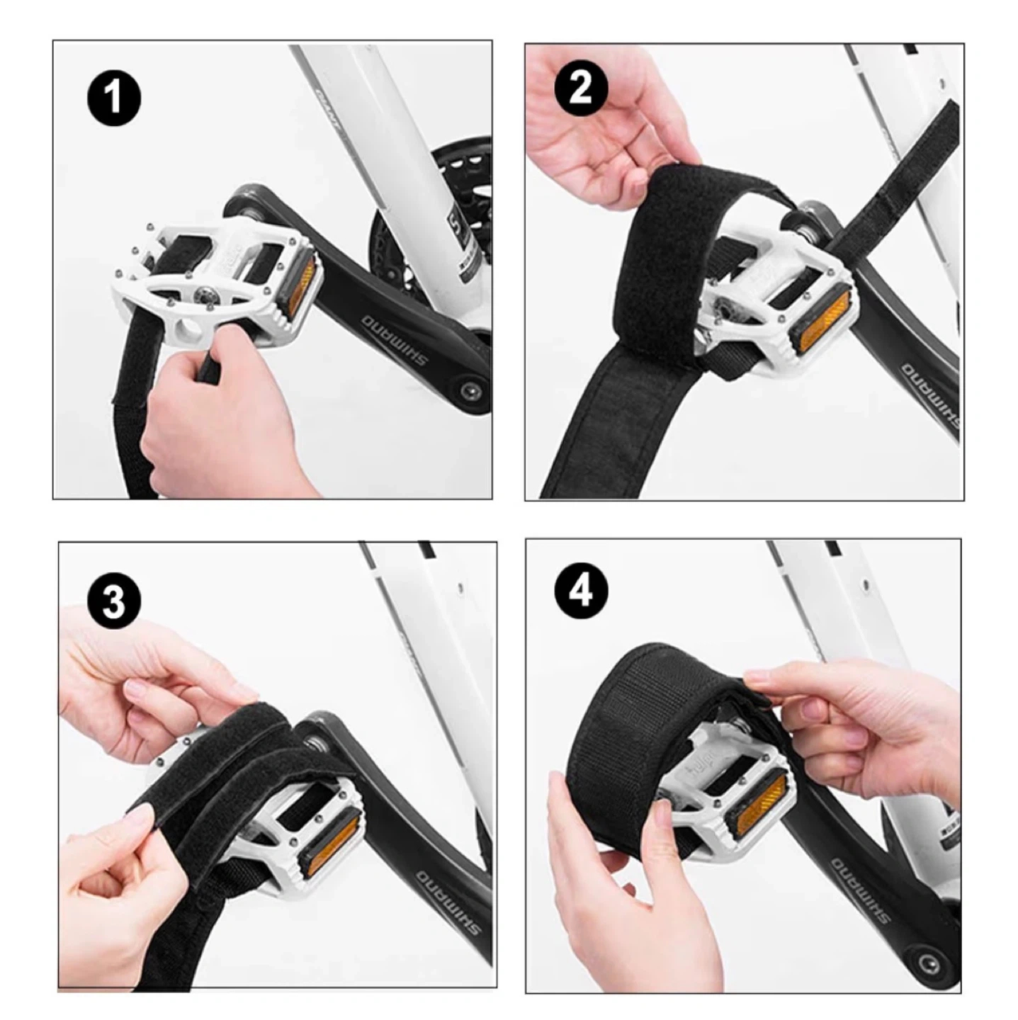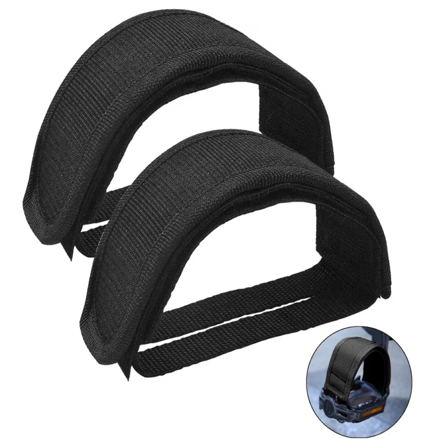 Get a better grip on your bike pedals with these black pedal straps! They're easy to install and will help keep your feet secure while riding. Perfect for cycling enthusiasts!