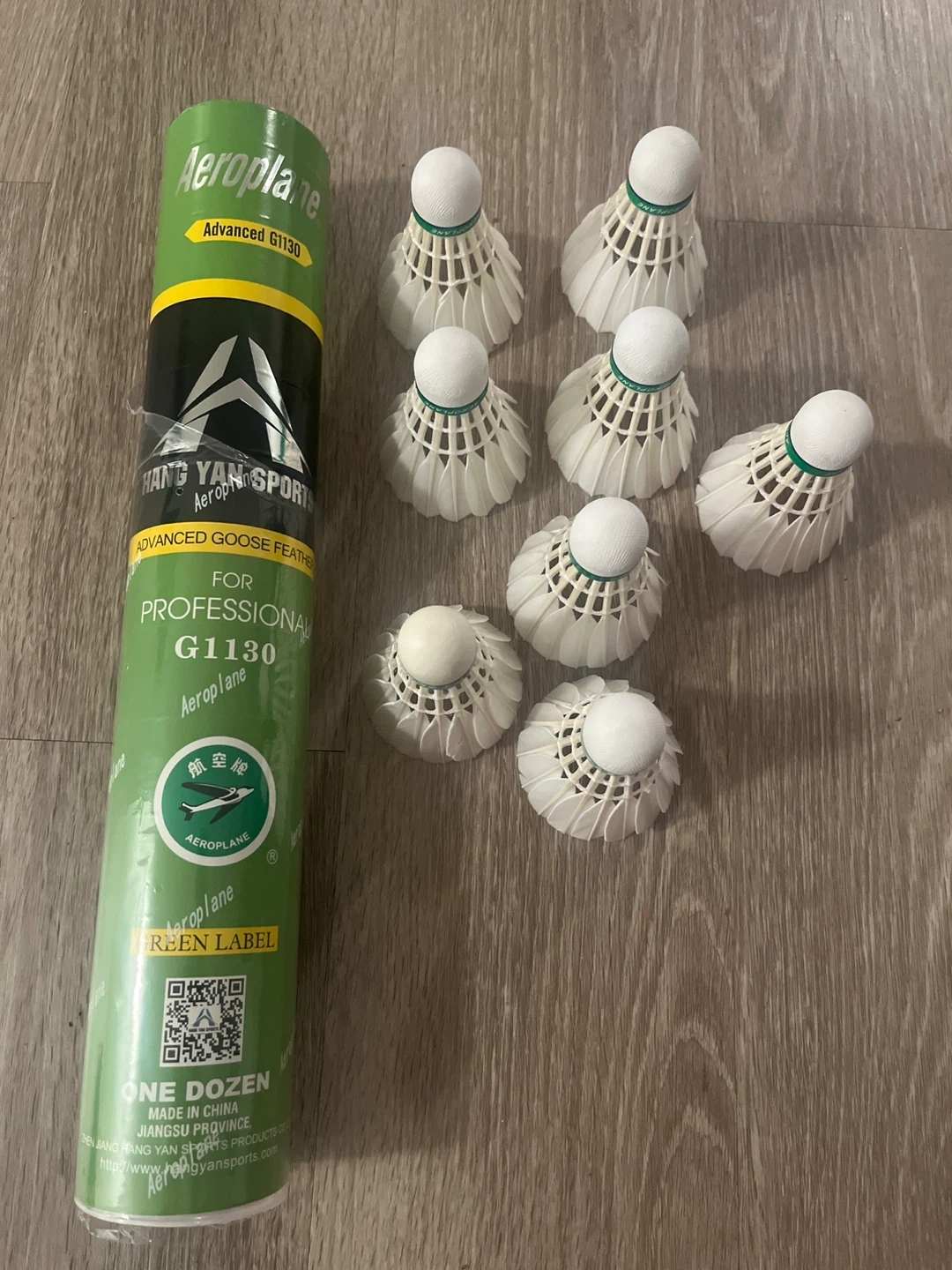 Selling a tube of Aeroplane Advanced G1130 badminton shuttlecocks. These are advanced goose feather shuttlecocks, perfect for professional play! One dozen included. 8 Birdies
