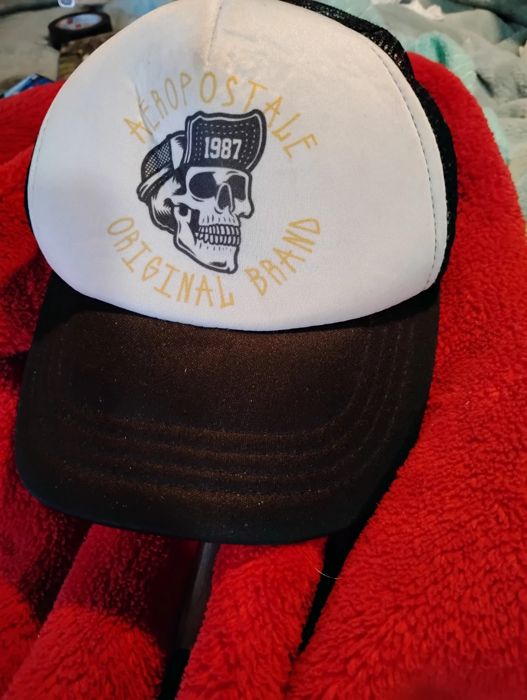 23Selling an Aeropostale Kids trucker hat! It features a cool skull design and is in great condition. Perfect for your little one!