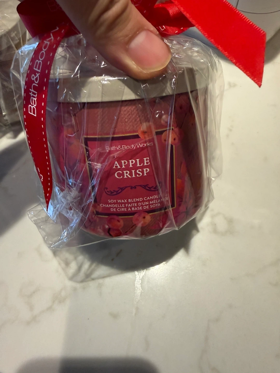 Brand new Bath & Body Works 3-wick candles. Soy wax blend. Scents include Harvest Gathering, White Pumpkin, and Apple Crisp. Perfect for cozy evenings!