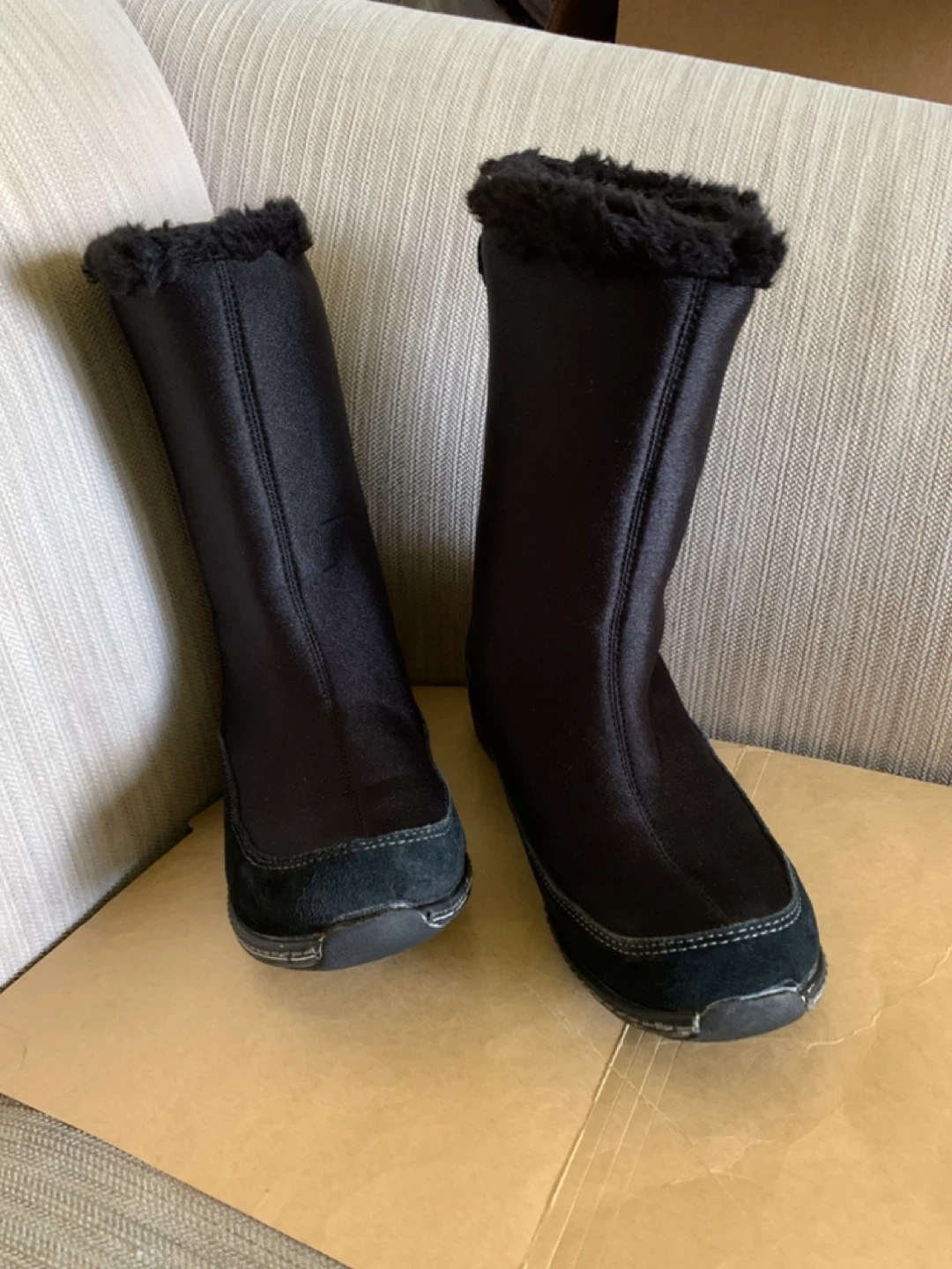 Cute pair of Aetrex winter boots in black. They're super comfy and ready for the Canadian winter!