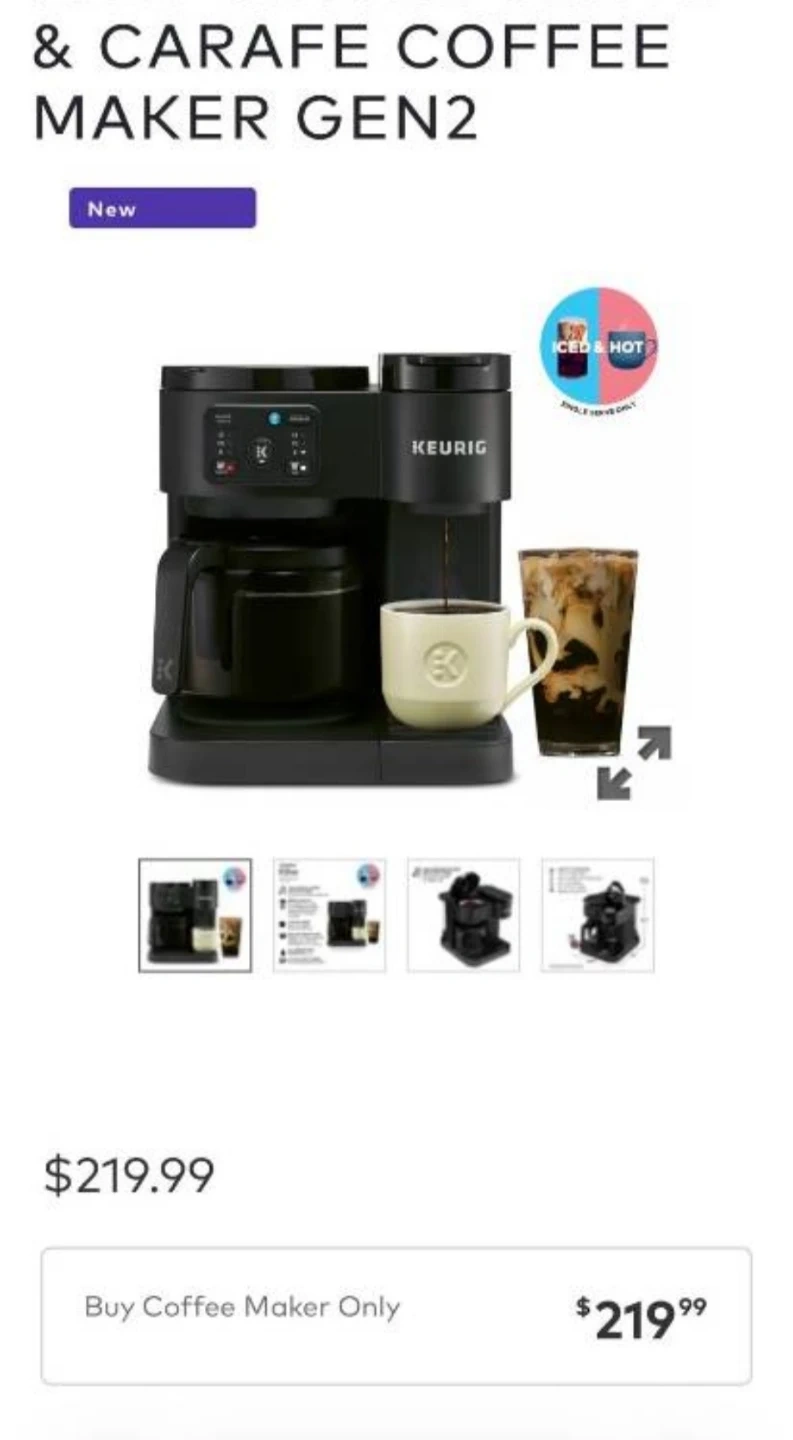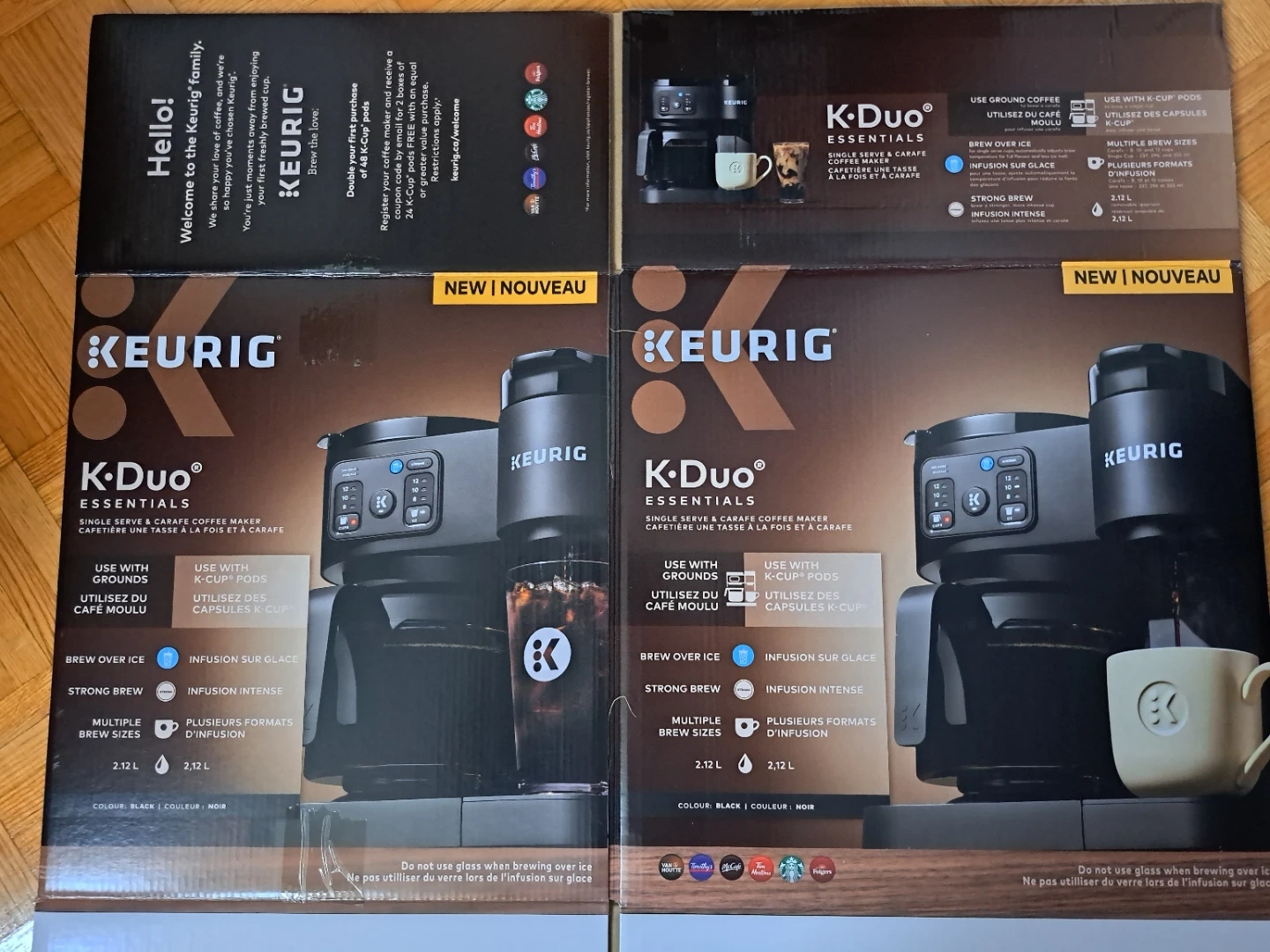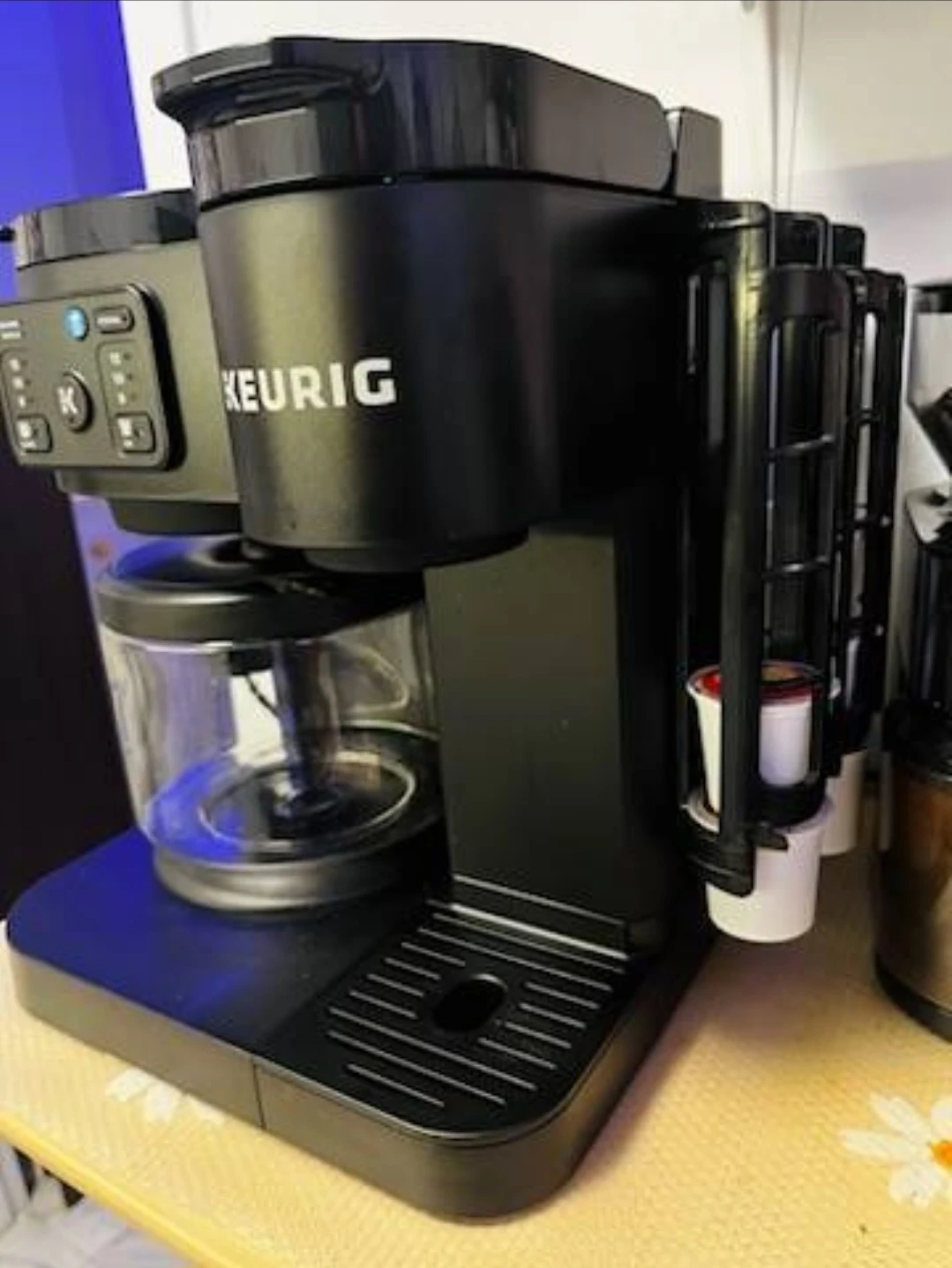 This Keurig K-Duo Essentials coffee maker brews both single-serve K-Cup pods and ground coffee. It offers brew strength options and multiple brew sizes. The water reservoir is easily visible for refilling.
