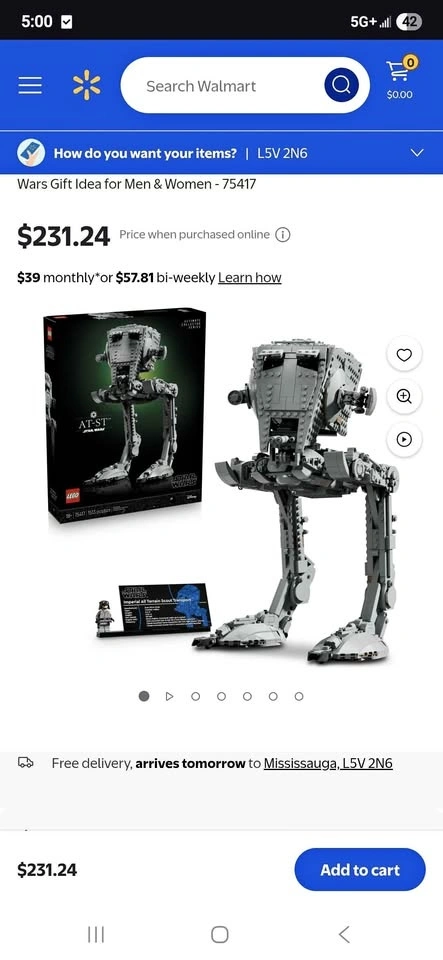 Awesome LEGO Star Wars AT-ST set for sale! This is the Ultimate Collector Series (UCS) 75417, with 1513 pieces. Box is factory sealed. Has some minor creases on box edges, but nothing major. Great build for any Star Wars fan or collector!