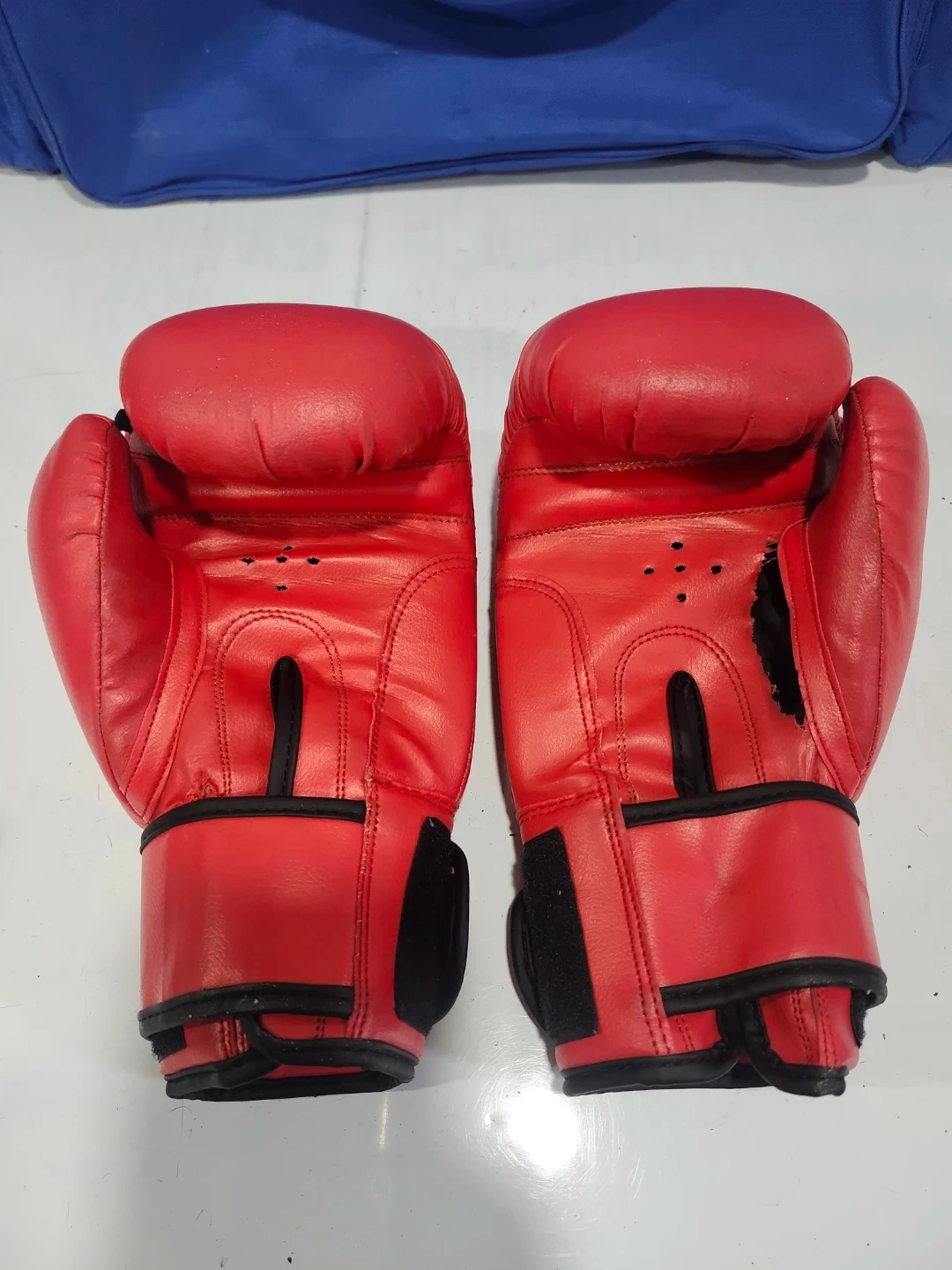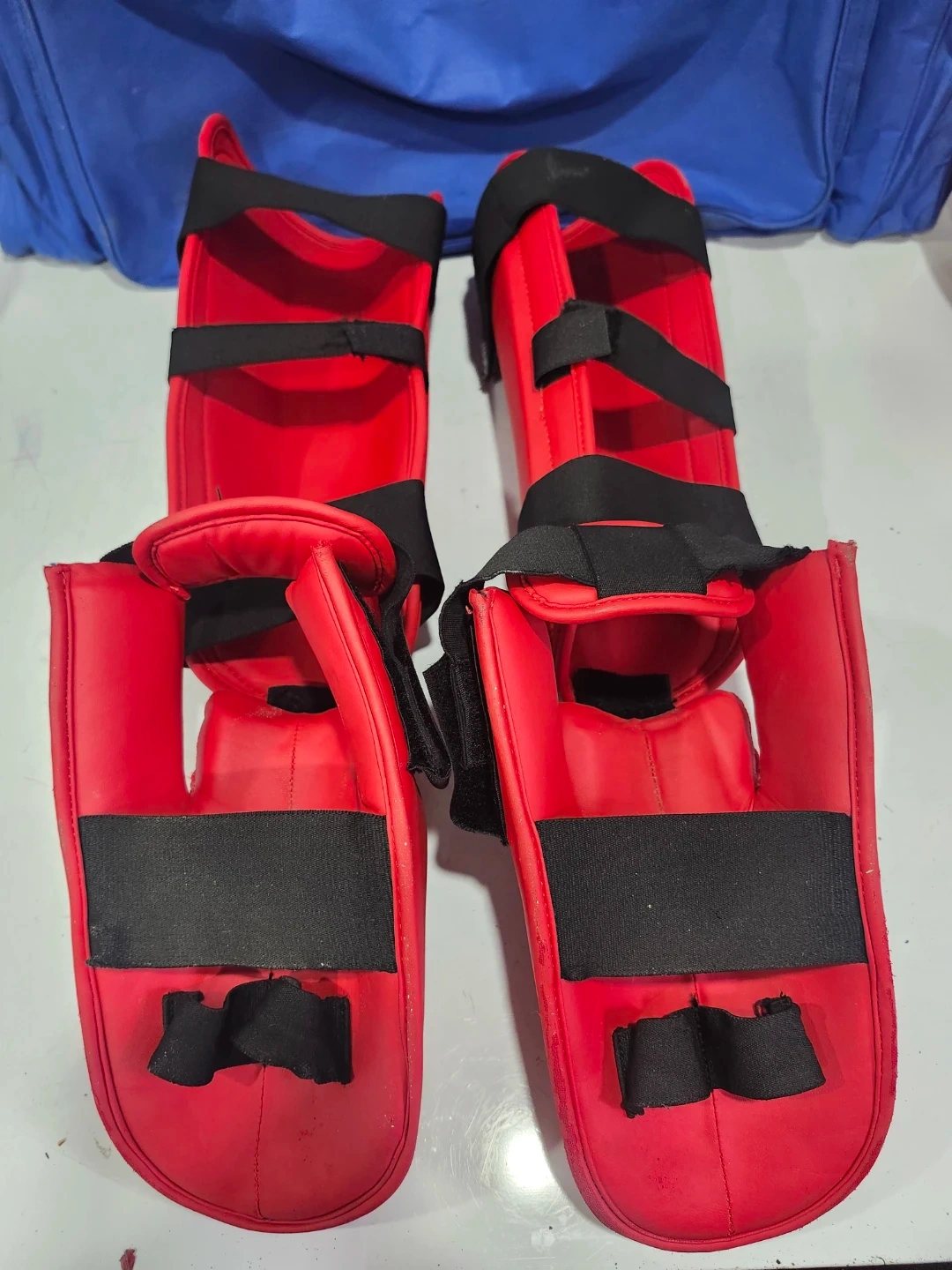 Also included are matching red shin and foot protectors and a blue duffel bag for easy transport. Great for martial arts training!