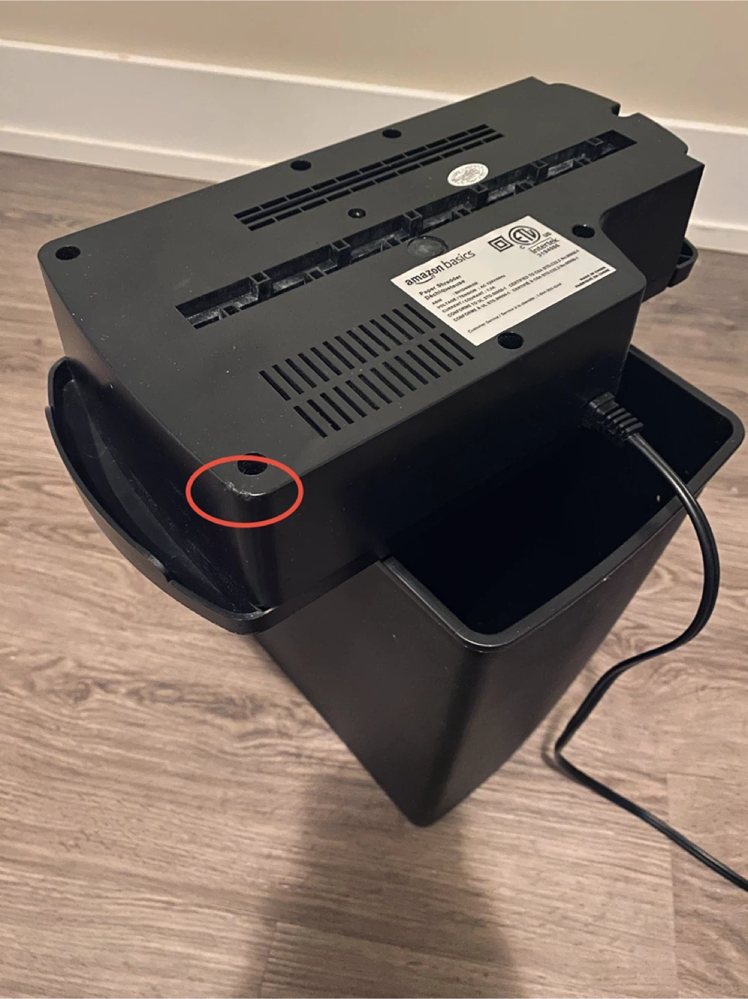 • Minor cosmetic dent on bottom corner of shredder (see pic 5), doesn’t impact performance