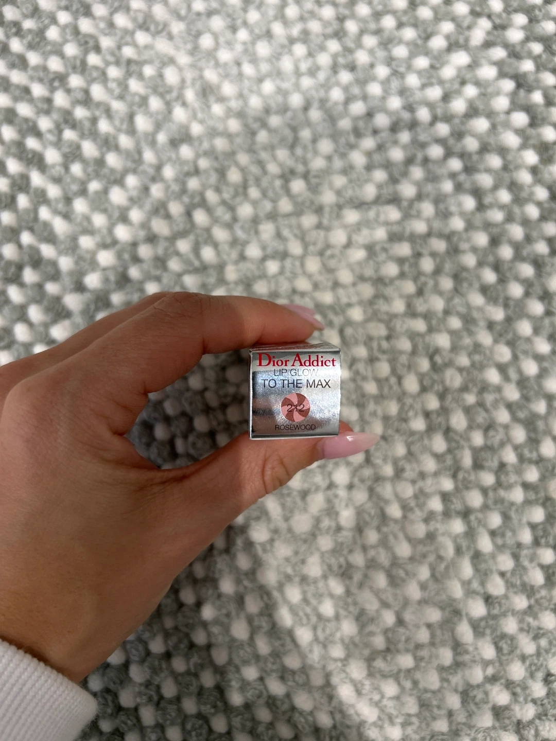 Dior Addict Lip Glow To The Max hydrating lip balm. It's the shade 212 Rosewood. Color Reviver technology enhances lips' natural colour. It smoothes and softens lips for 24 hours.