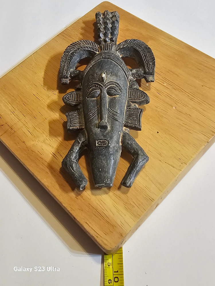 10Selling a unique piece of wall art, an African mask mounted on a wooden board. It's a striking decorative item that would add character to any room. The mask is dark in colour and has intricate details, making it a great conversation starter!