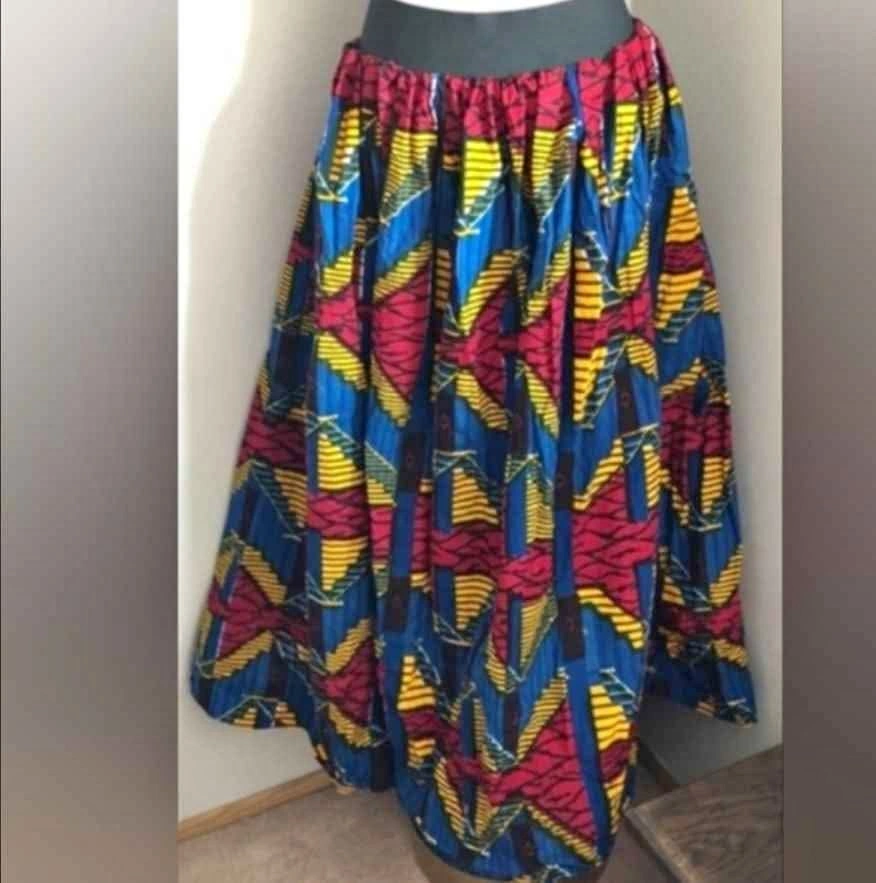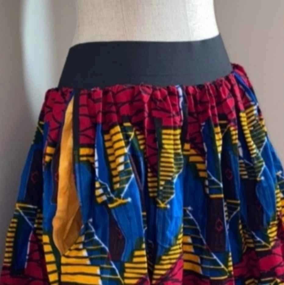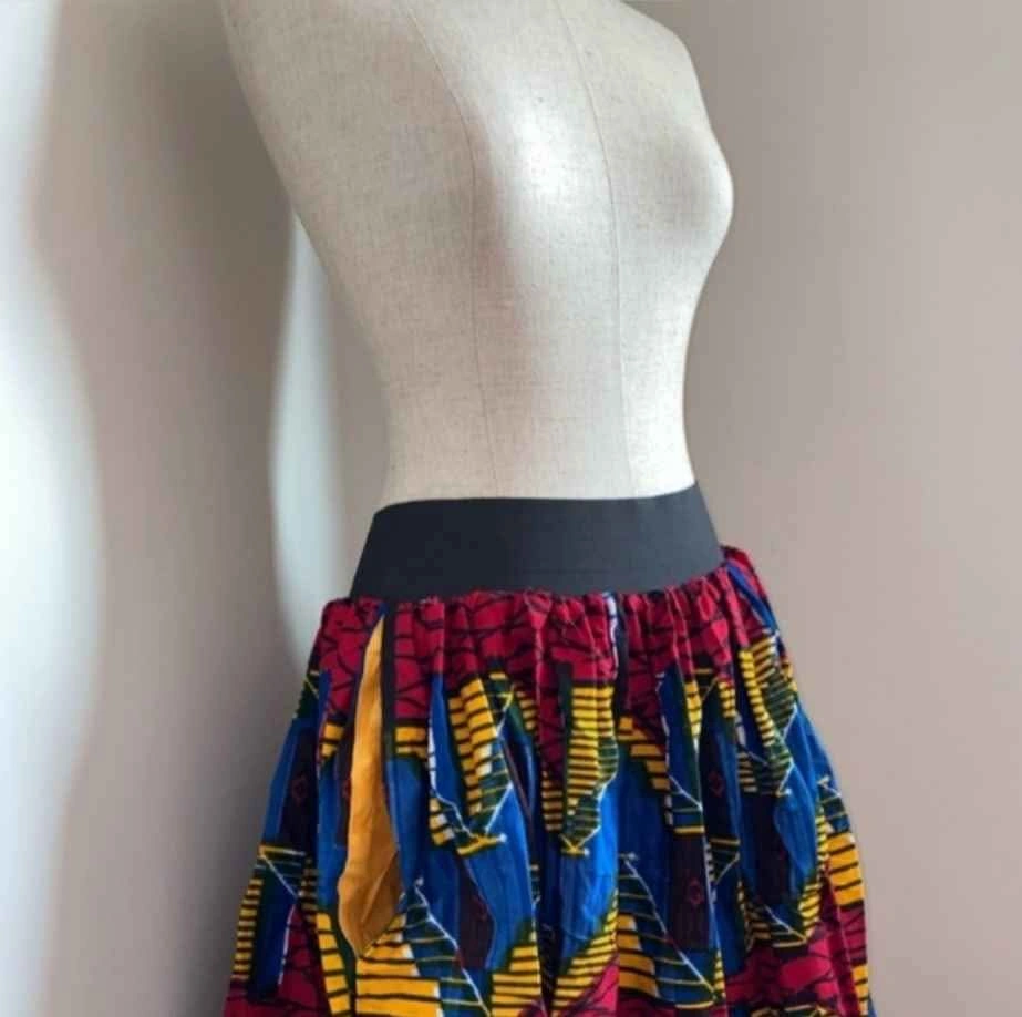 Beautiful and vibrant African print skirt in size 3X. Bold red, yellow, and blue Ankara fabric with unique patterns Comfortable wide waistband for a flattering fit Handy side pockets! Long maxi length – perfect for casual wear, events or cultural celebrations Condition: Gently worn, excellent condition Material: 100% cotton (non-stretch) Bring color, culture, and comfort to your wardrobe with this one-of-a-kind piece!