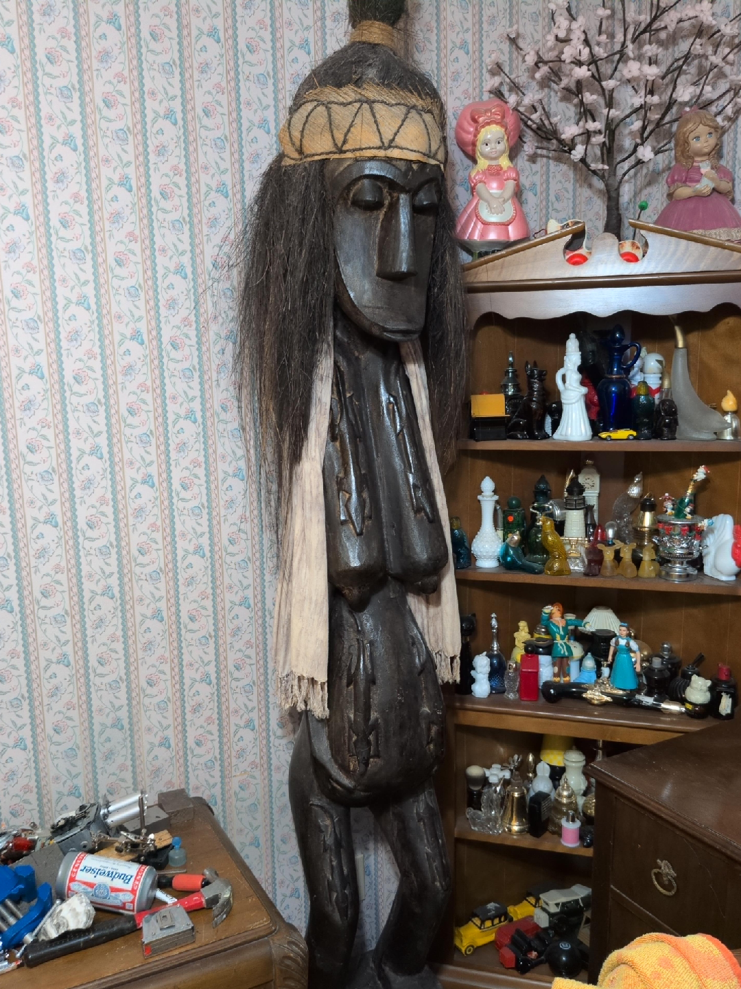 107 and 1/2 ft tall single craving one piece of wood . every rare item comes all the way from Africa. never seen nothing like this. they sell in New York for $5,000 us. weighs about 60 lb. I will accept any reasonable offer over $2, 000