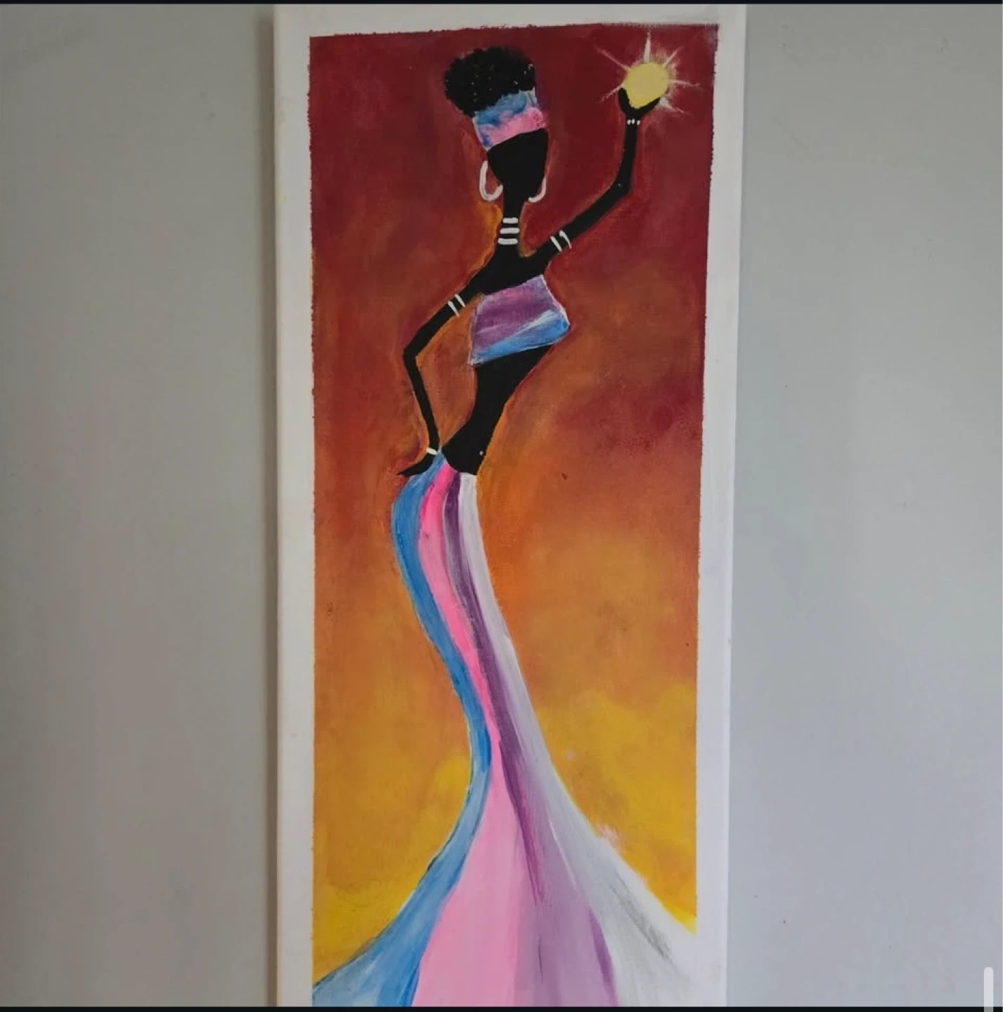 Painting of an African woman. The date August 10, 2024 is visible on the image. African art for sale if you want a custom art piece you can message me privately and also prices are negotiable