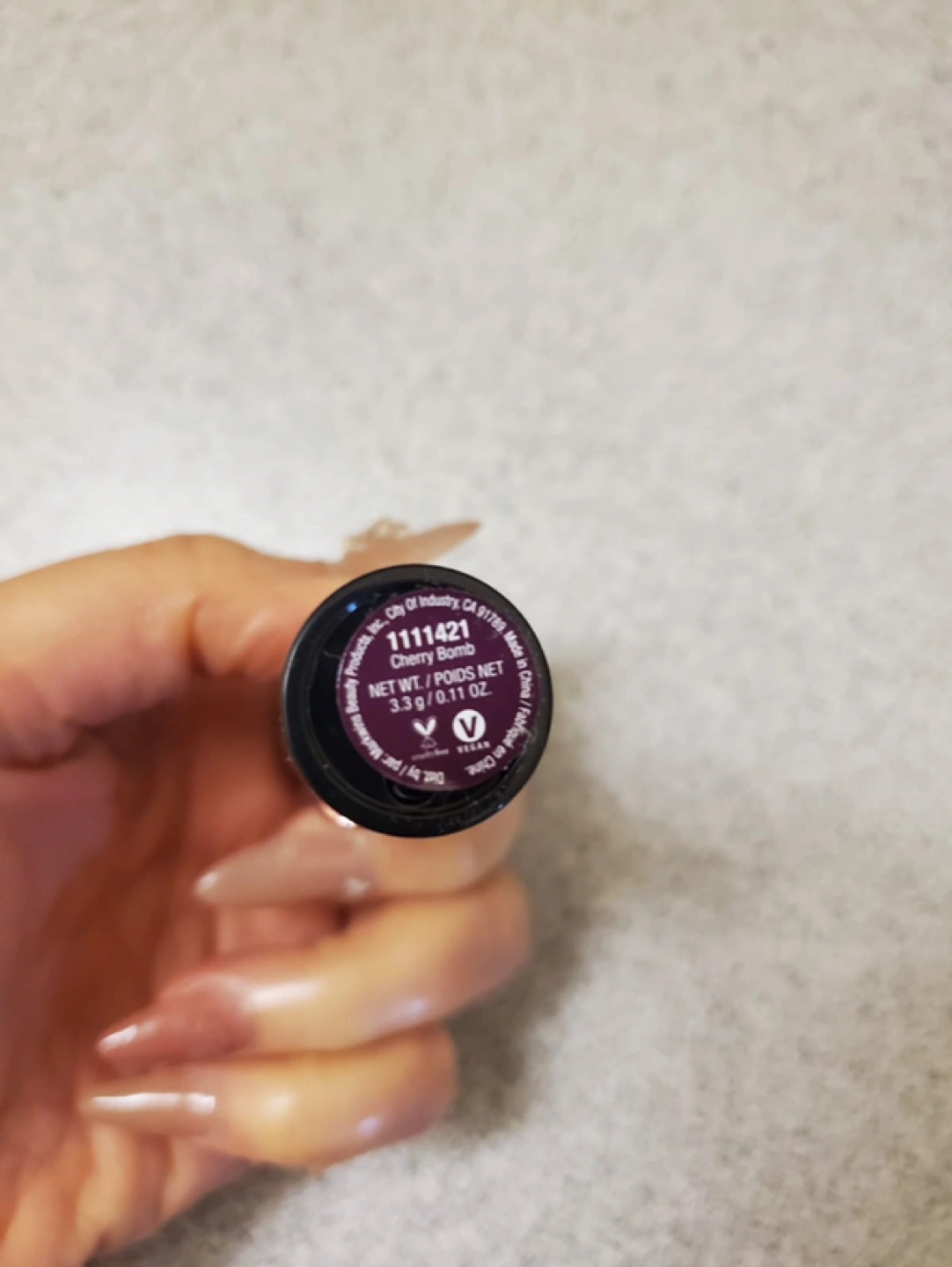 This is a Wet n Wild MegaLast Matte Lipstick in the shade Cherry Bomb. It's a vegan formula. Net weight is 3.3 grams or 0.11 ounces.