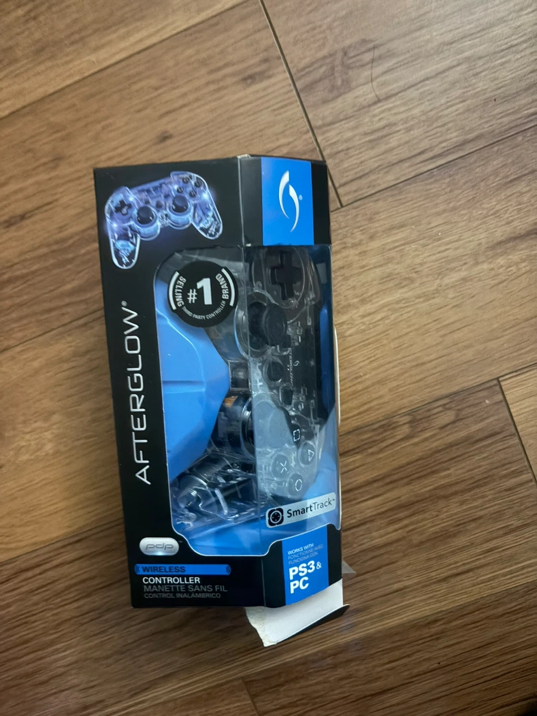 60Selling a brand new, in-box Afterglow wireless controller! It's compatible with both PS3 and PC. The box includes the controller and a SmartTrack USB dongle. It requires 2 AA batteries (not included).