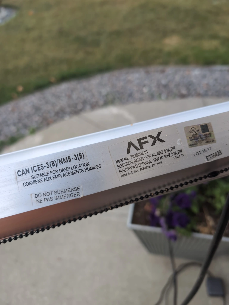 19Selling an AFX INL600SL1C LED light bar. It's suitable for damp locations and has an electrical rating of 120V AC, 60Hz, 0.3A, 32W