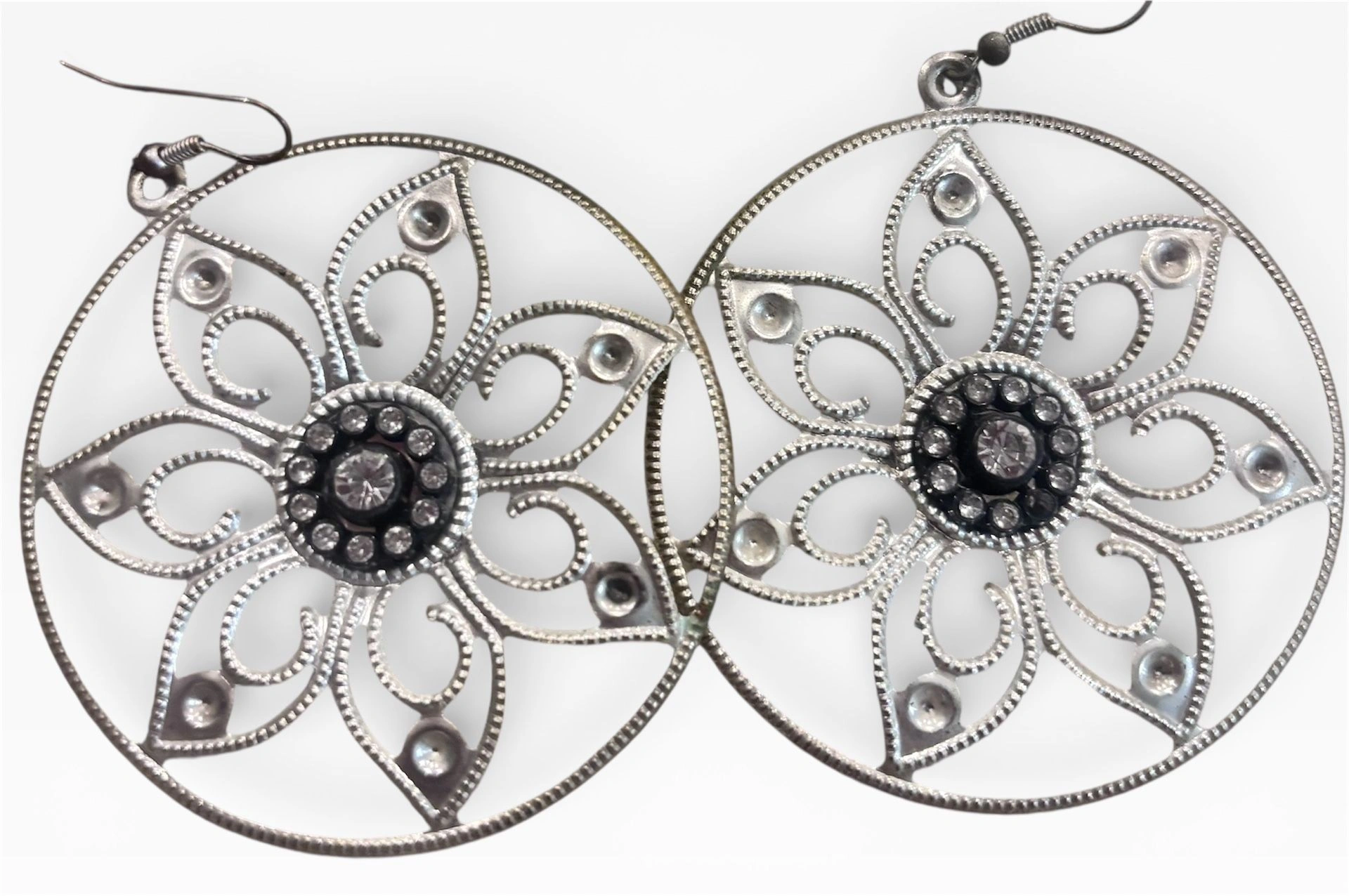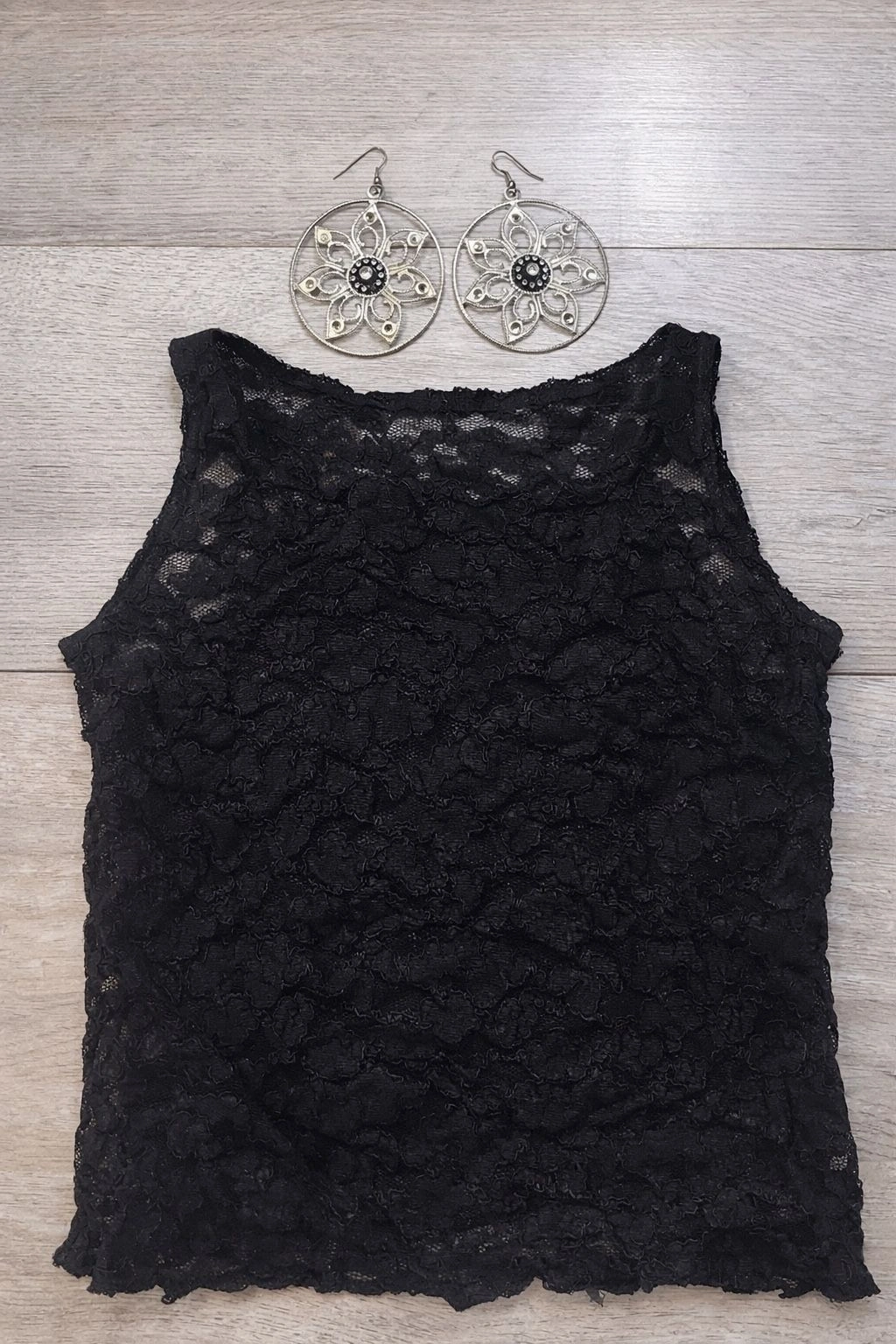 Ann Taylor Black Lace Top + Silver Floral Earrings | Chic Bundle