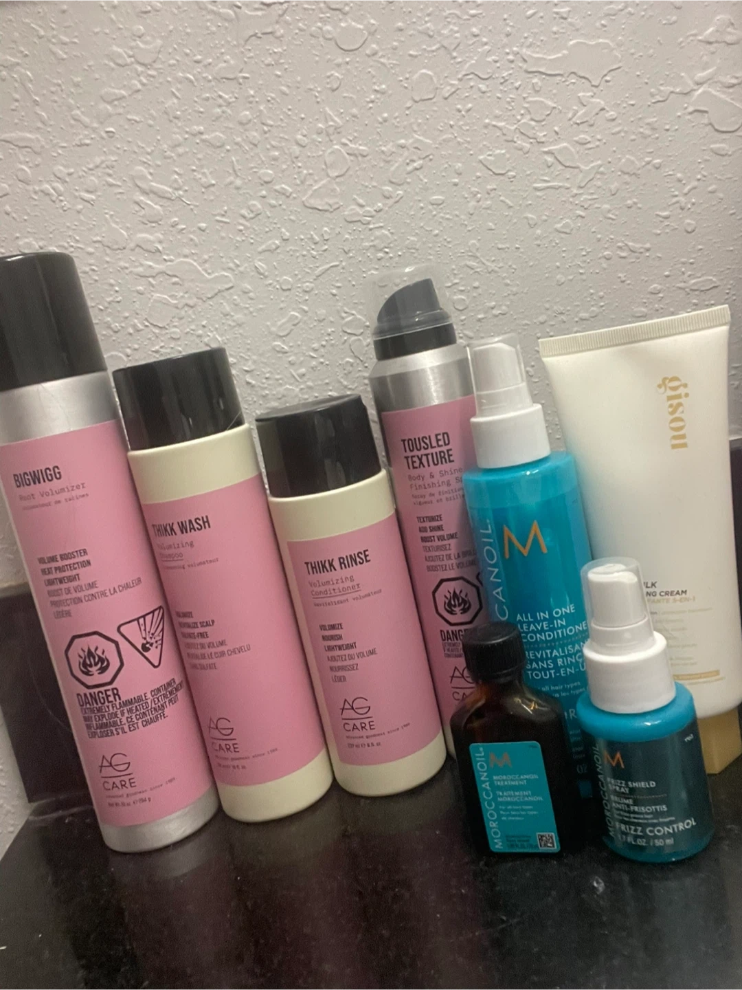 537Selling a bundle of AG Care and Moroccanoil Gisou hair products! Includes: - AG Care Bigwigg Root Volumizer - AG Care Thikk Wash Volumizing Shampoo - AG Care Thikk Rinse Volumizing Conditioner - AG Care Tousled Texture - Moroccanoil All In One Leave-In Conditioner - Moroccanoil Frizz Control -Gisou Honey Milk 5 in 1 styling cream