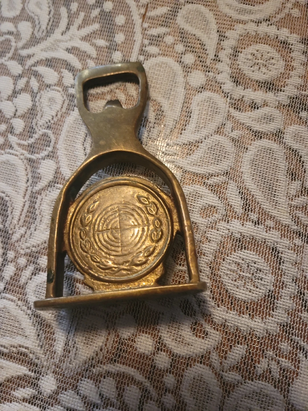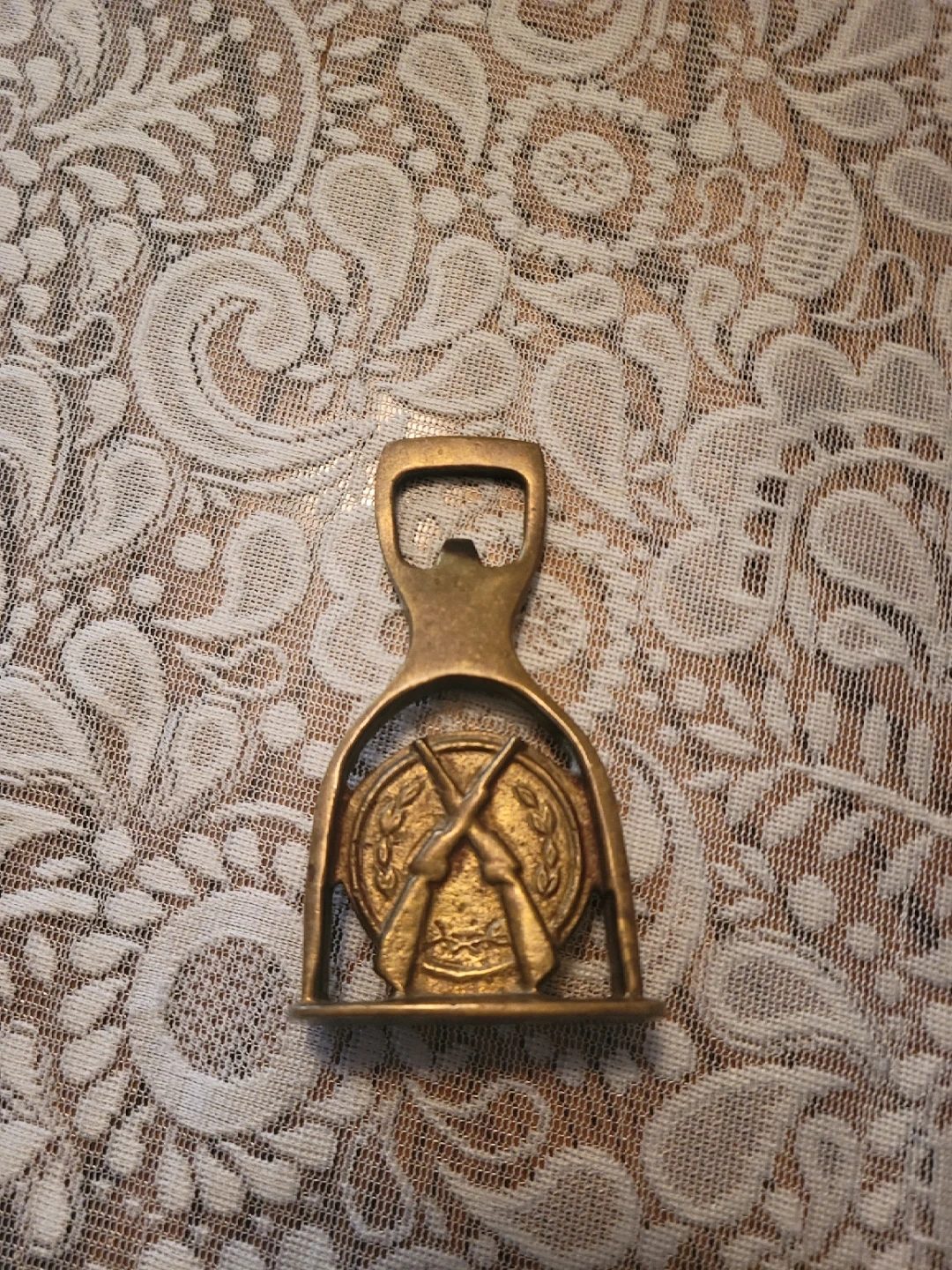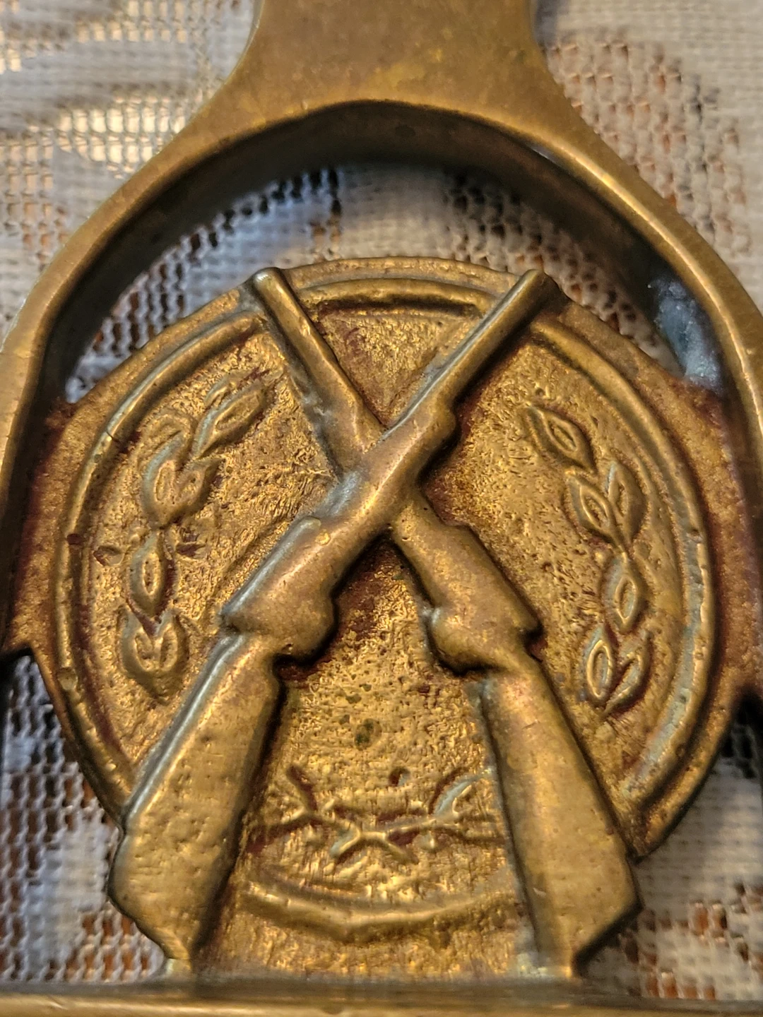 Vintage Brass Bottle Opener with Crossed Rifles Emblem w/ Target