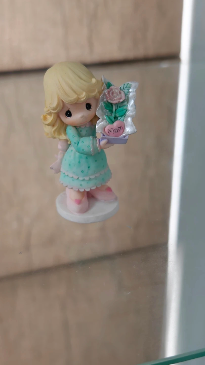 This Precious Moments figurine from 2004 features a little girl holding a bouquet for Mom. I have both variations. Perfect for Mother's Day!!