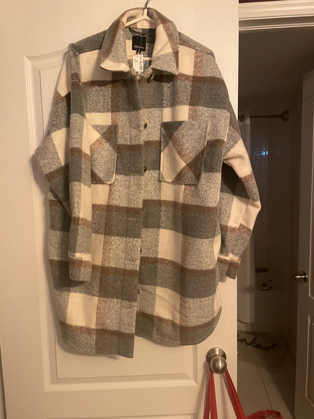 Selling a Reitmans plaid shacket in size XL. It's brand new and ready for a home! The neutral plaid pattern is super versatile for fall and winter. Pick up Eglinton and Kipling or Eglinton and satellite