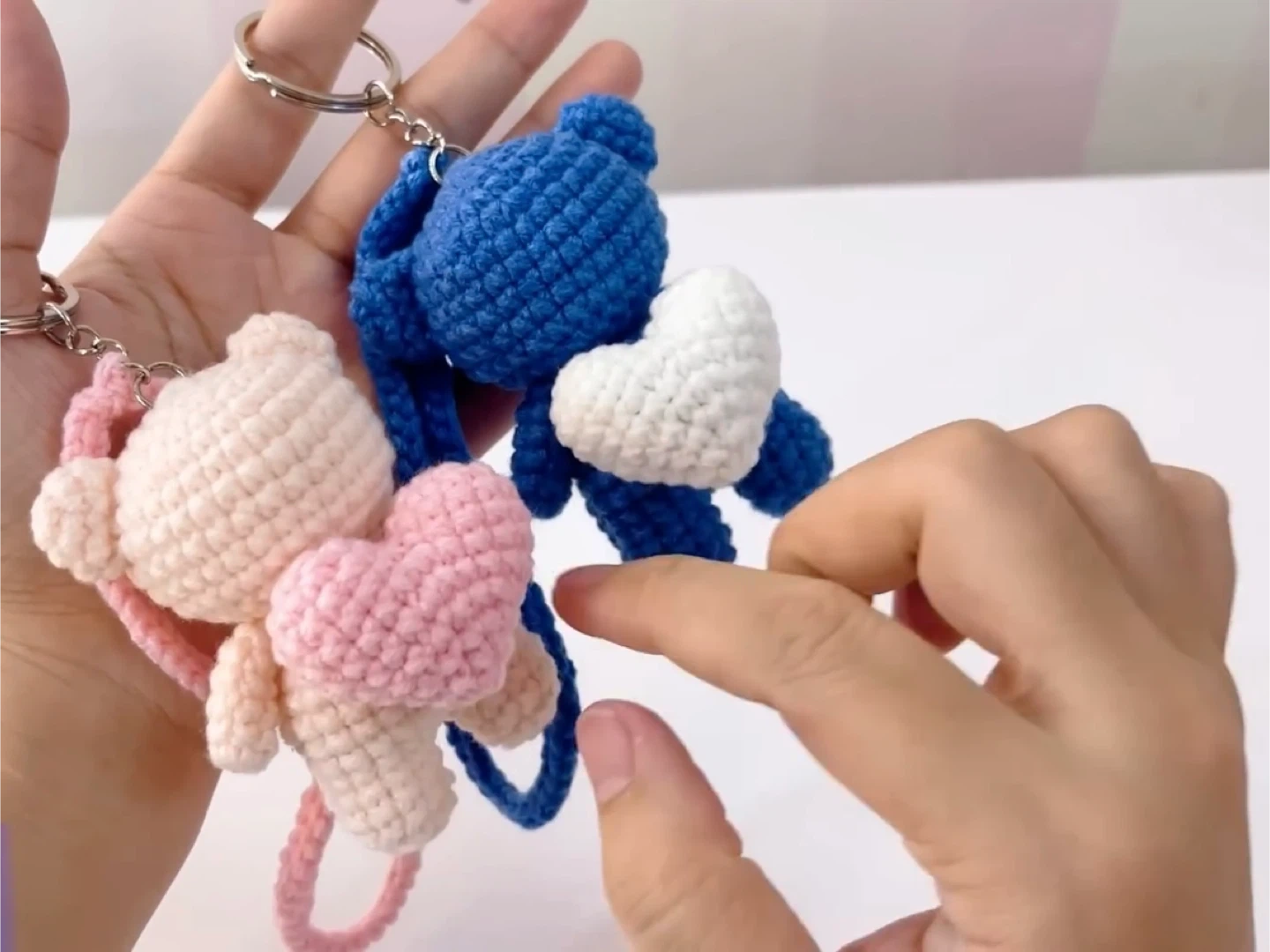 Selling these adorable handmade crochet bear keychains! They each have a cute little heart. Available in blue and pink. Perfect for adding a touch of handmade charm to your keys or bag