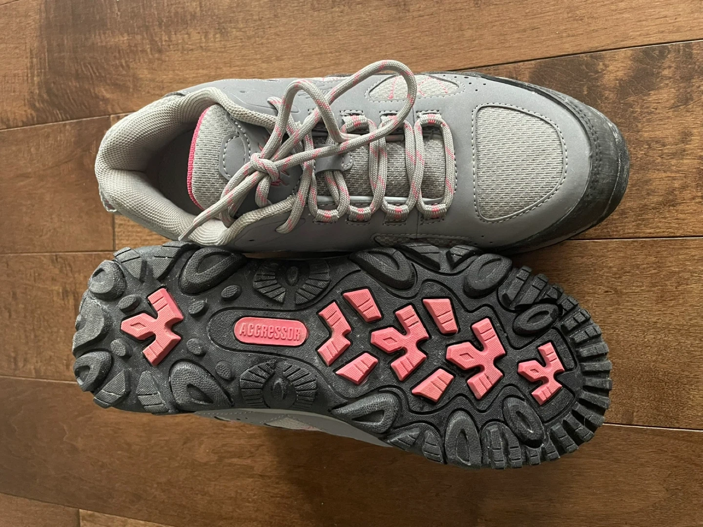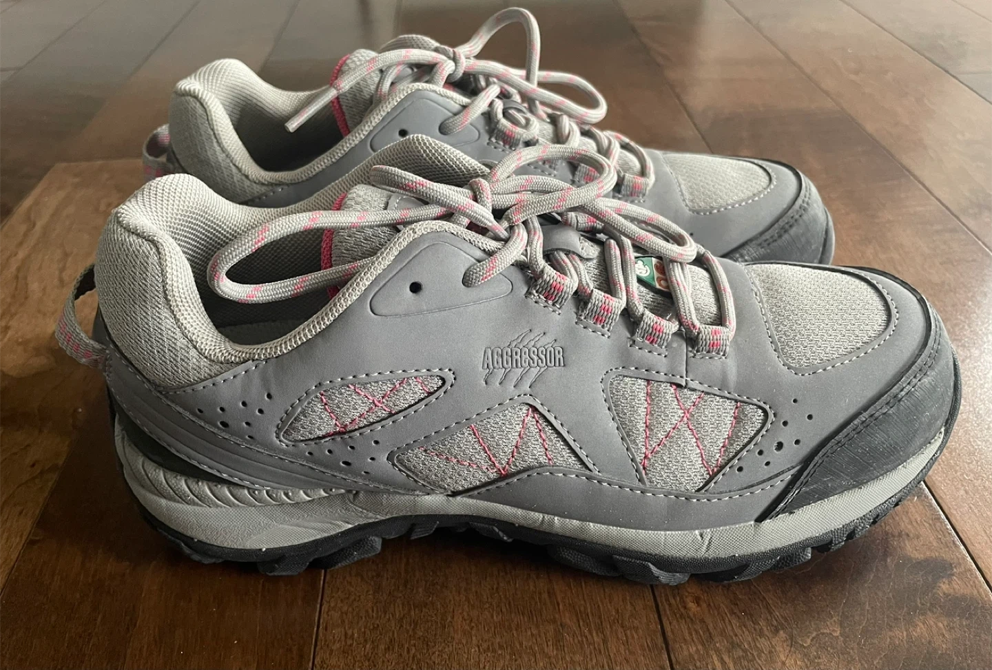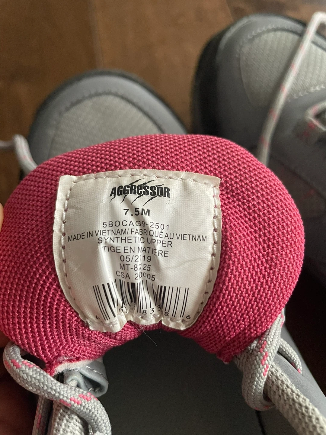 10Aggressor Women’s Steel Toe Shoes Low Cut Hiking Shoes Size - 7.5 CSA Grade 1 steel toe, steel plate. Electric shock resistant. Puncture resistant Bought for a university course lab, worn only about 5 times in the lab. In great condition.