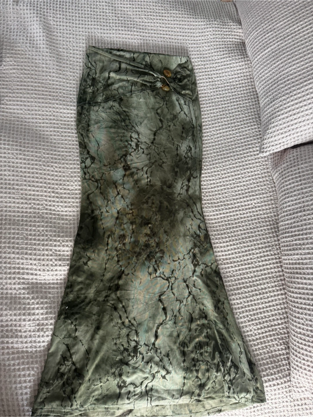 Mermaid vibe boho maxi skirt. Brand new, never worn. High waisted. Has two layers - green slip and then mesh outer layer with felt design. Stretch fabric so it hugs curves well.