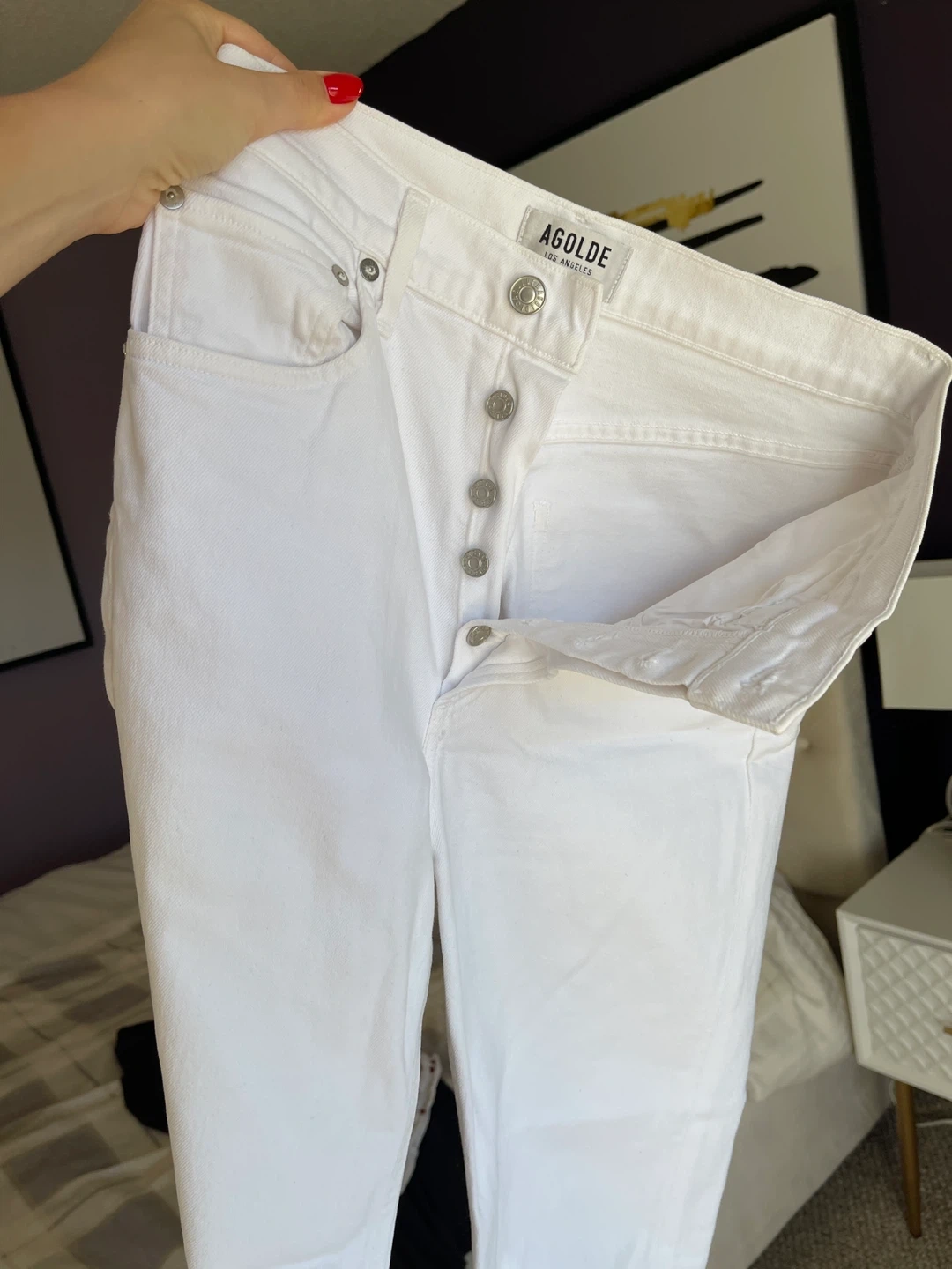 10Selling a pair of AGOLDE white jeans. They're in new condition and ready for a new home! Size 26, fits one size larger