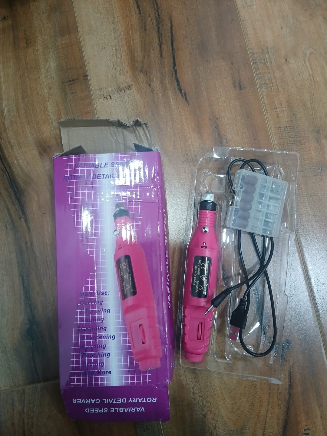 Pink nail drill + Drill bits + drill charger