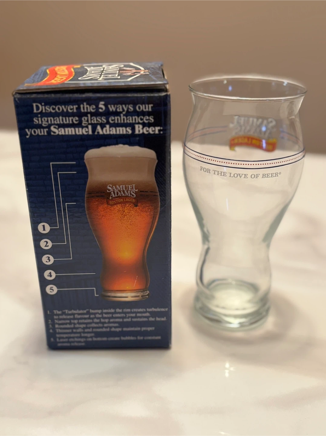 Selling a Samuel Adams Pint Glass, complete with its original box! It's in great condition and ready for your favourite brew. The box highlights how the glass enhances your beer-drinking experience. Perfect for any beer enthusiast!