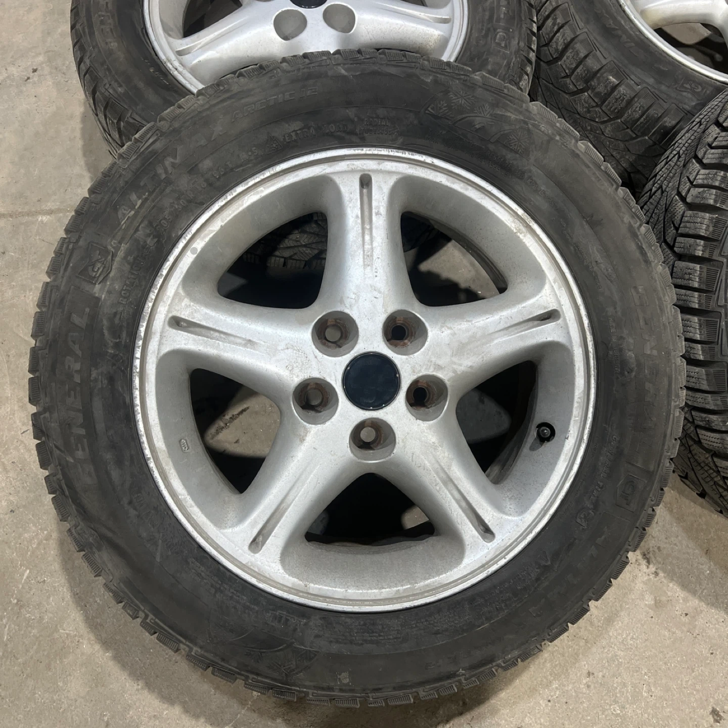 Set of four 205/60R16 General Altimax Arctic 12 snow tires with about 70% tread remaining. Mounted on aluminum alloy rims 5x114.3 +42 67.1