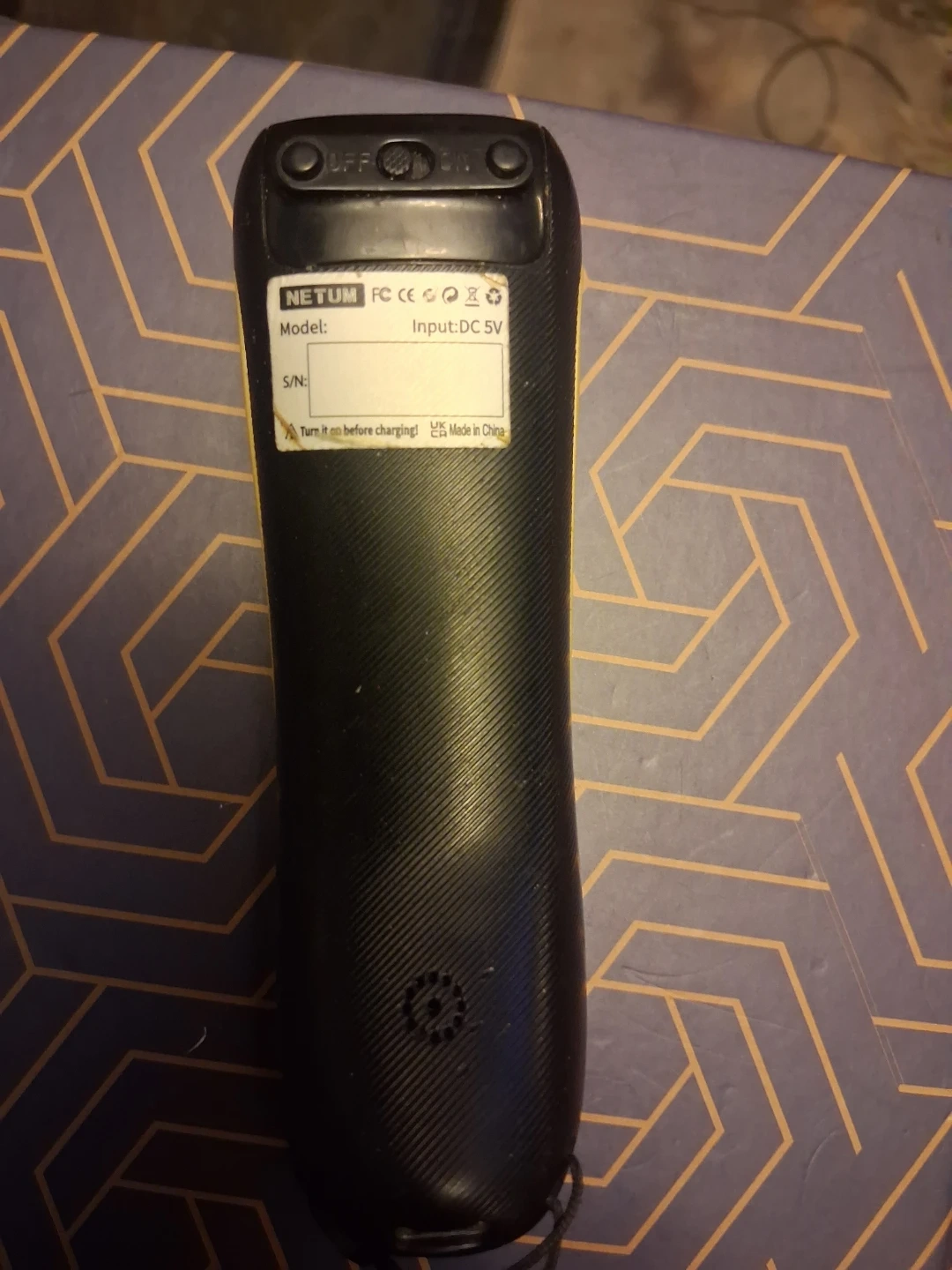 NETUM CORDLESS QR CODE SCANNER (mini bar code scanner)r with DC 5V input. It's black with a yellow accent. Great for presentations!