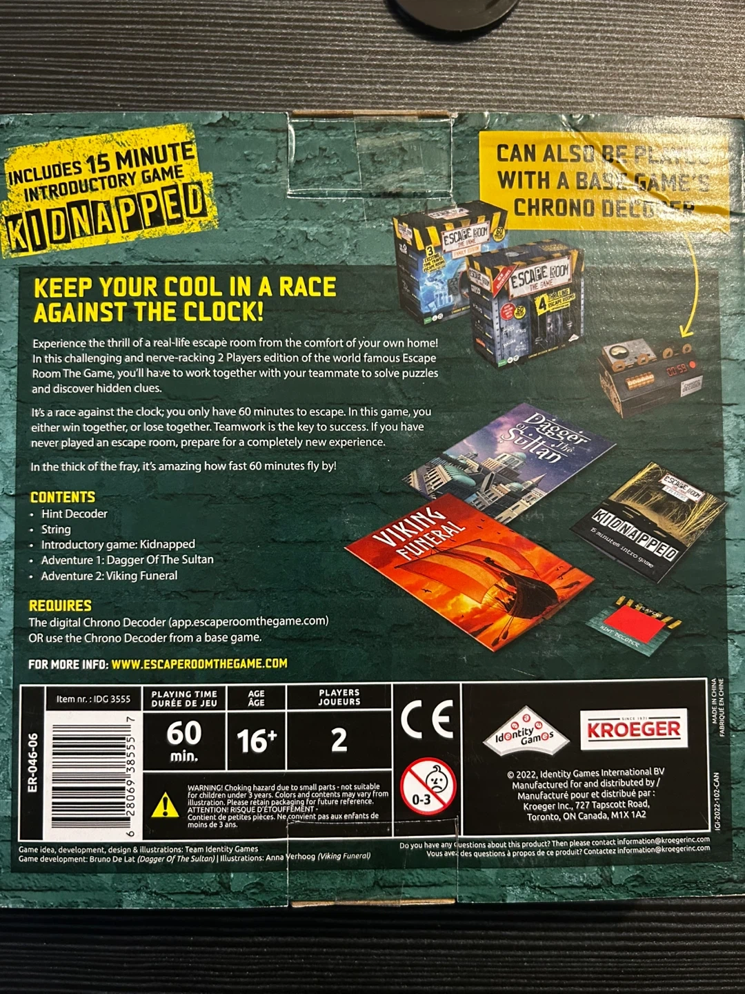 2. Dagger of the Sultan & Viking Funeral (Escape Room The Game β 2 Players) β $15