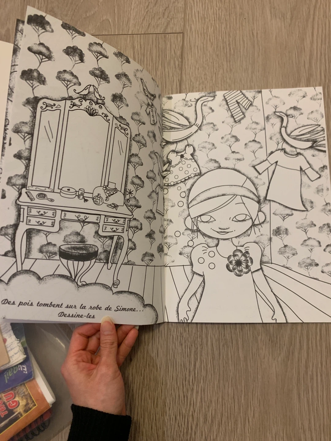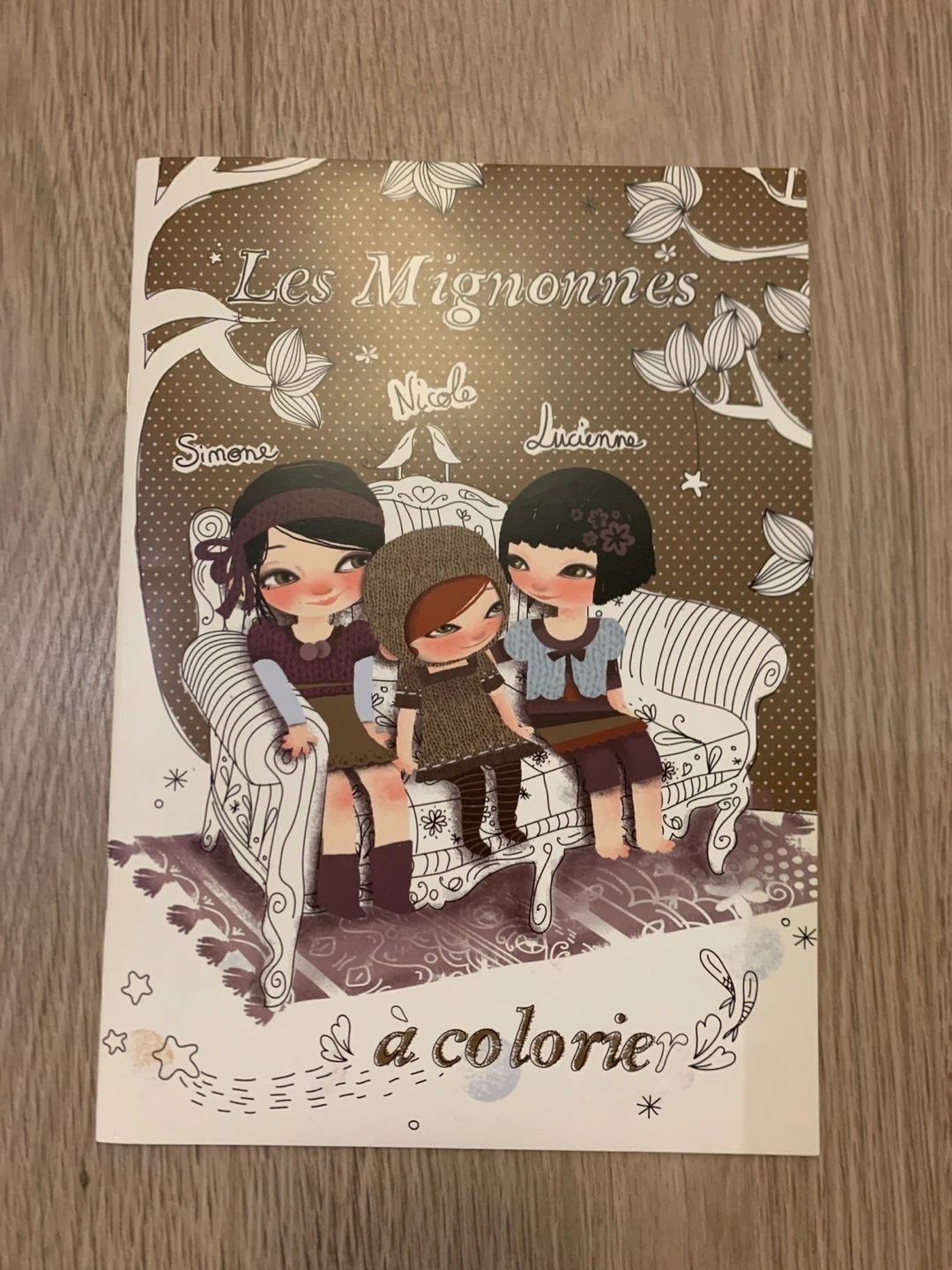 This is a Les Mignonnes colouring book. It features line drawings for kids to colour. Includes characters Simone, Nicole, and Lucienne.