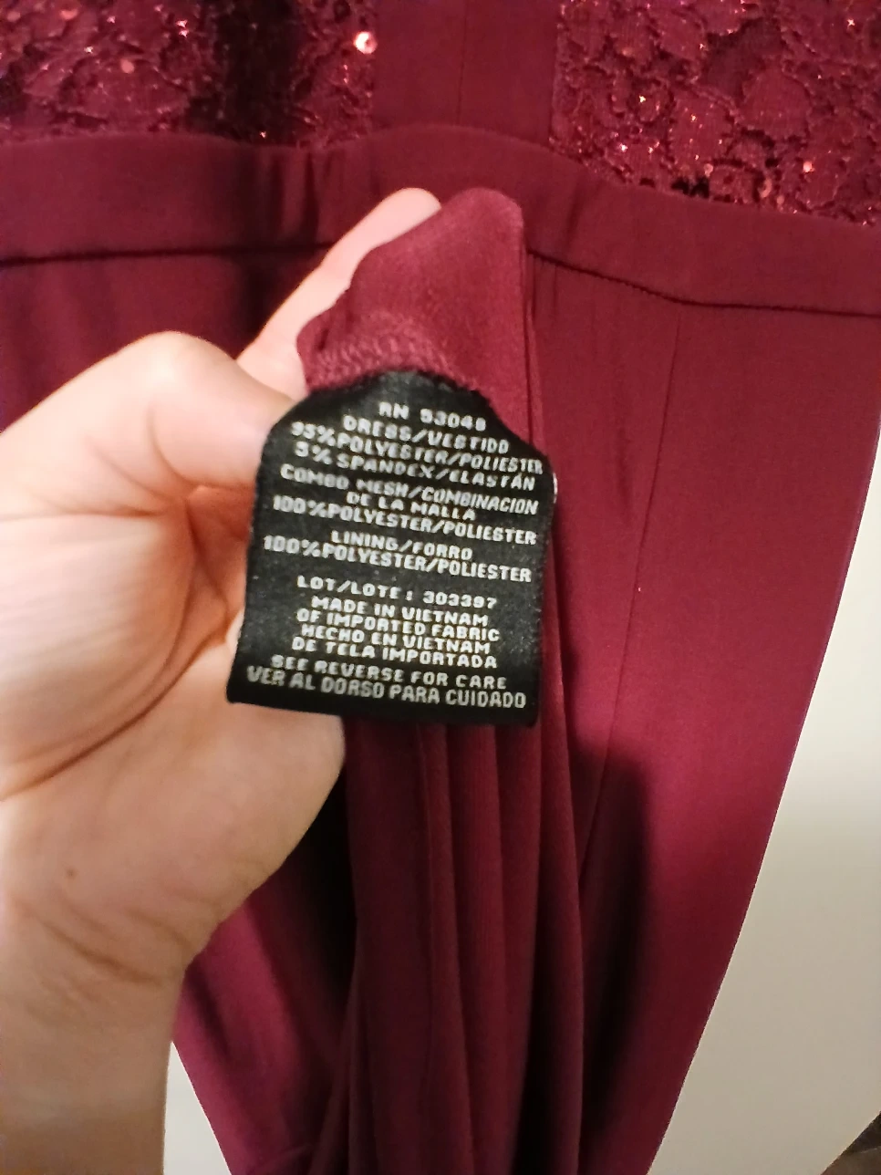 Composition / material: dress is 95% polyester and 5% spandex, combo mesh is 100% polyester; lining is 100% polyester