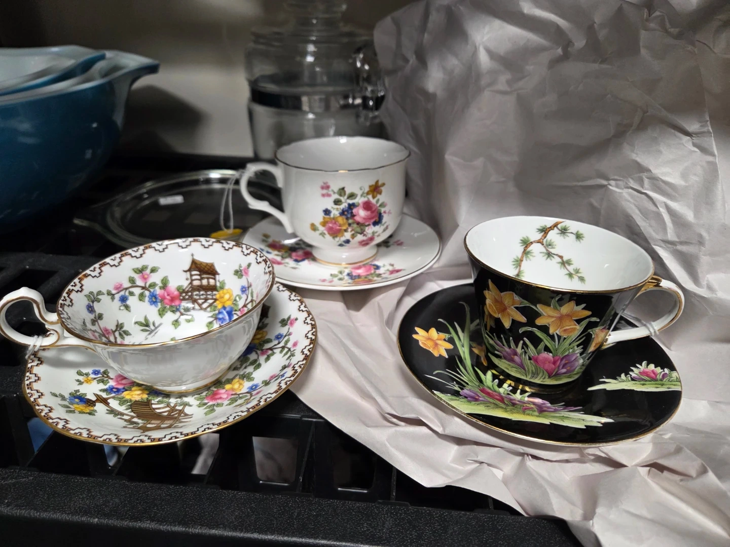 Functional and collectibles. Price is for all 3 cups and saucers. Or pick n choose for $25ea.
