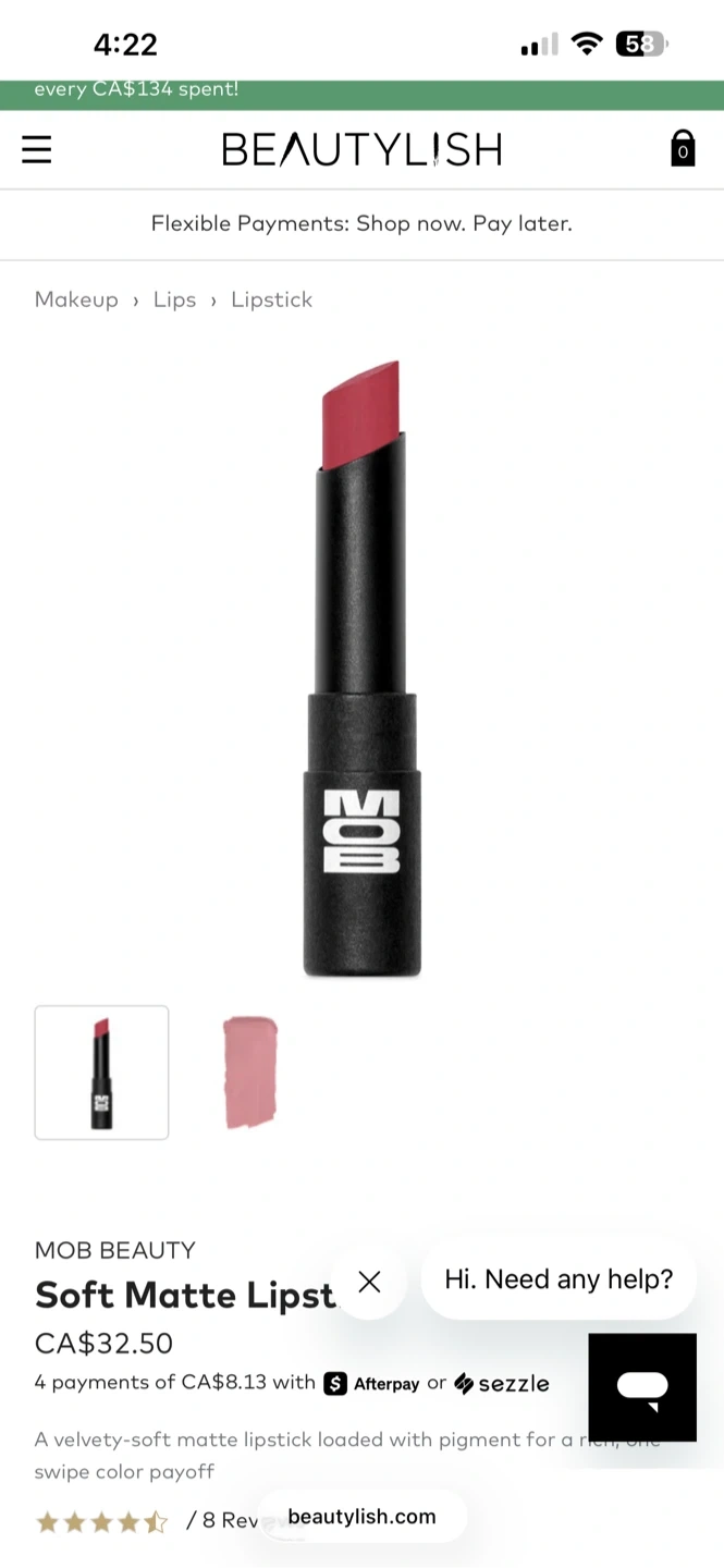 MOB Beauty Soft Matte Lipstick in shade M144. This is a velvety-soft matte lipstick loaded with pigment for a non-stop swipe color payoff. It's a full-size lipstick.