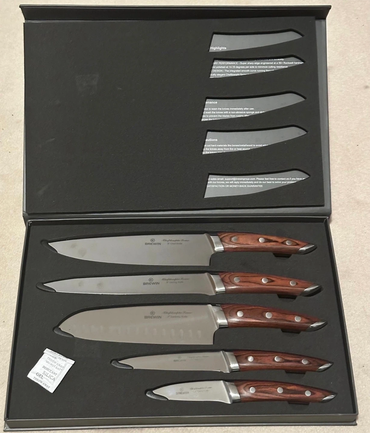 BREWIN 5-Piece Kitchen Knife Set with Wooden Handles