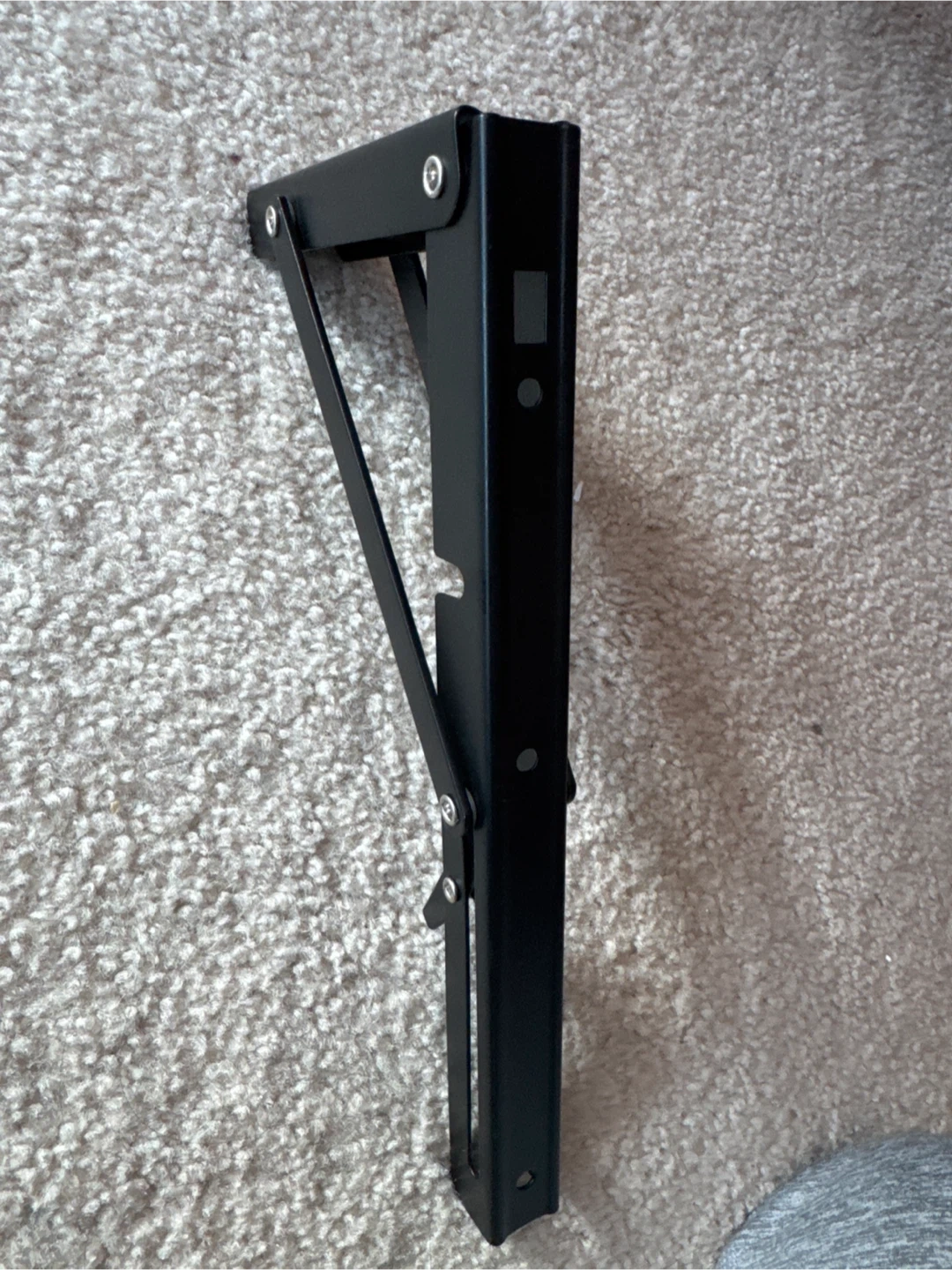 Selling a pair of black folding shelf brackets. They're in great shape and ready to be used to create a space-saving shelf. Perfect for small spaces or anyone looking to add some versatile storage