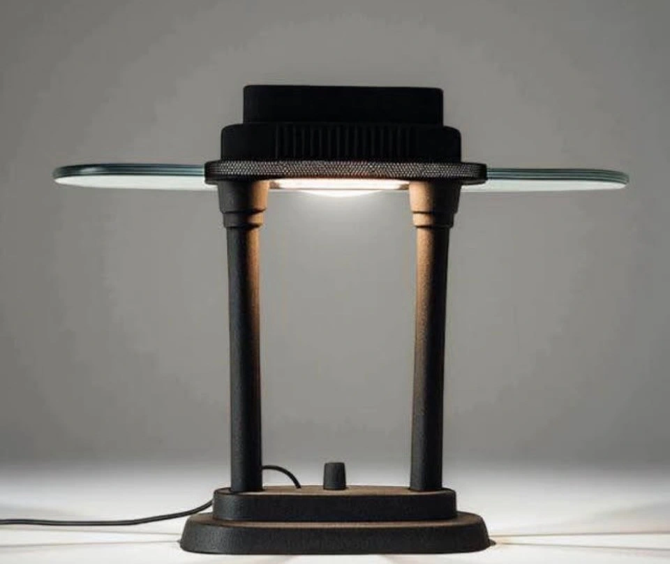 Postmodern Desk Lamp attributed to Robert Sonneman, 1980s - Dimmable Banker Lamp lamp that has two levels of light to choose from...measures 15.25" tall x 17" wide