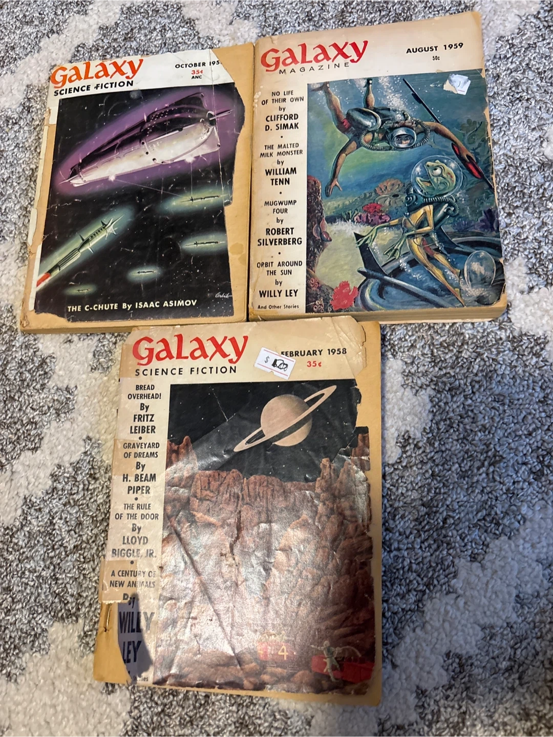 Selling a collection of vintage Galaxy Science Fiction magazines! These magazines are from the 1950s and feature stories by authors like Isaac Asimov, Clifford D. Simak, and Robert Silverberg. Great for collectors of vintage sci-fi!