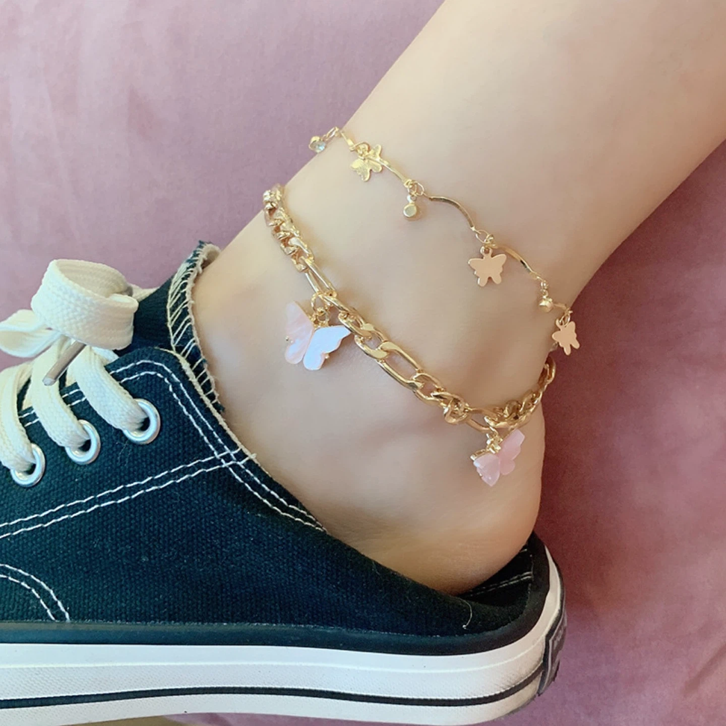 Gold Tone Butterfly Anklet