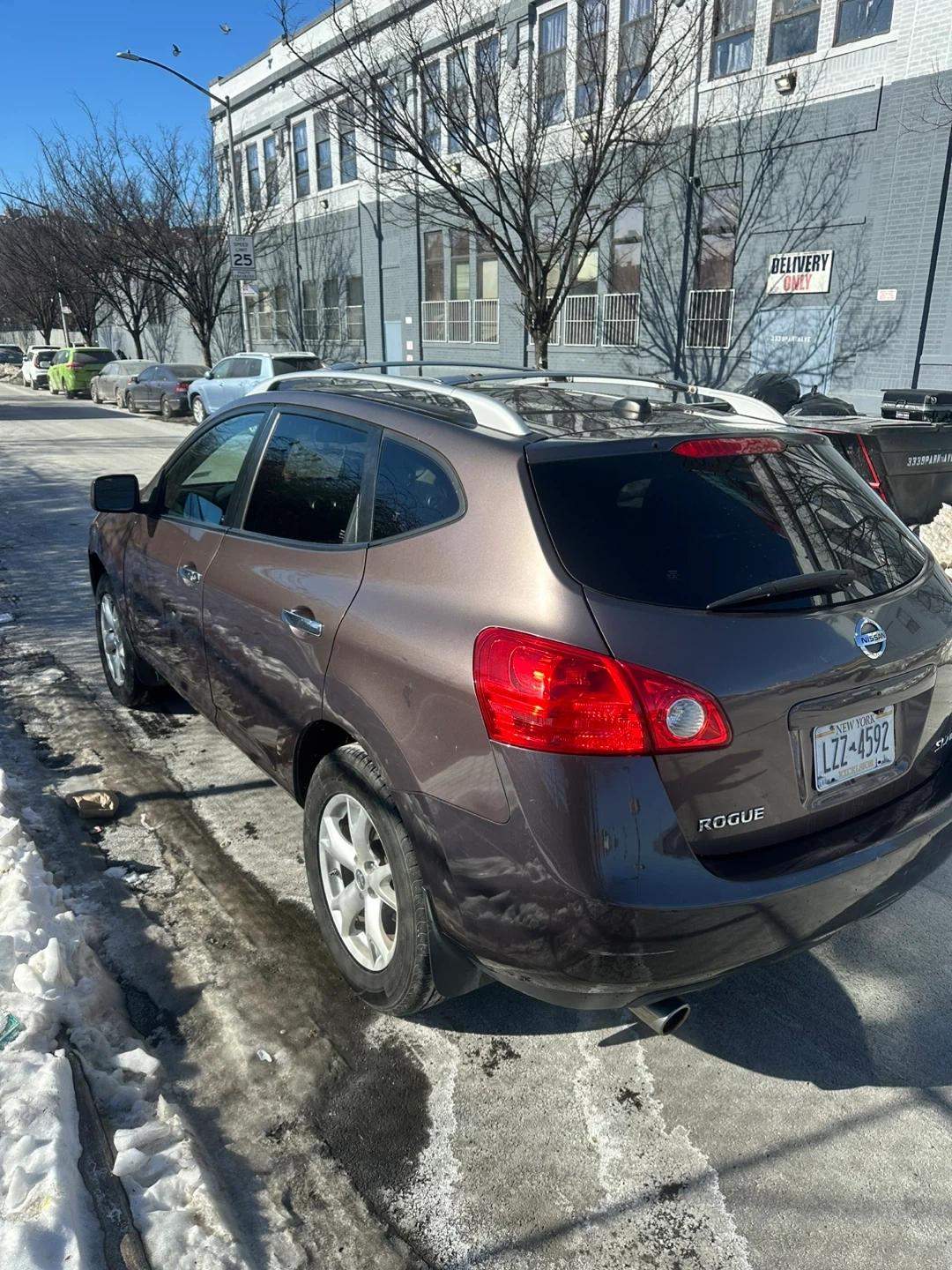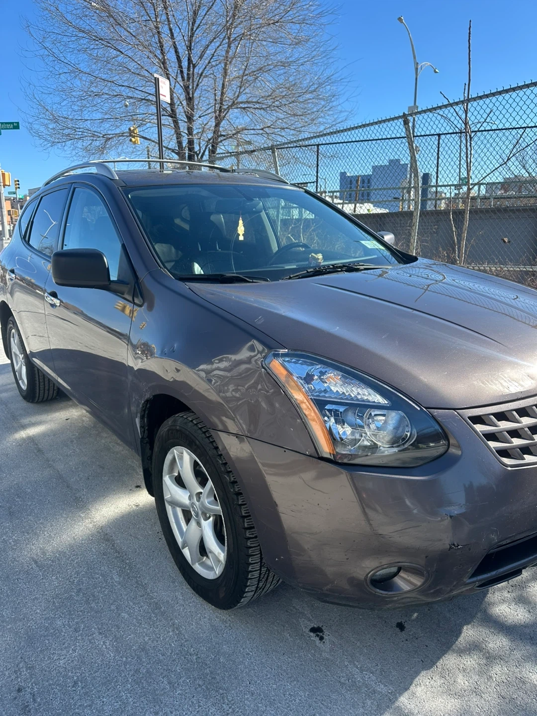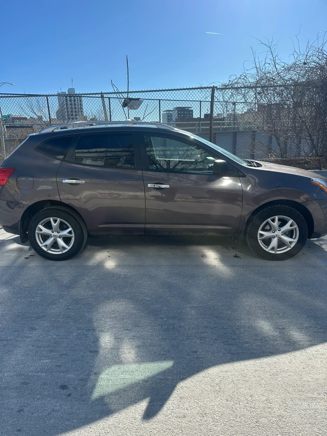 This is a Nissan Rogue SL AWD SUV. It's a dark gray color with silver wheels sun roof heated seats .heat and ac work great . It features a roof rack for extra storage mileage 107.. It's a practical choice for everyday driving.