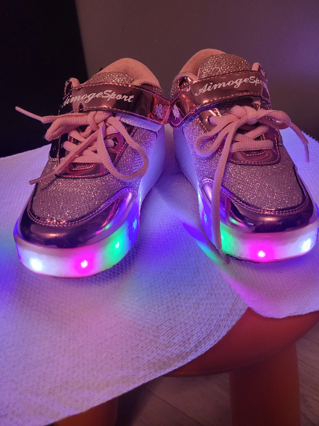 5These AimogeSport roller shoes are super fun! They light up and have built-in wheels for rolling around. They are in great condition and are a US size 1