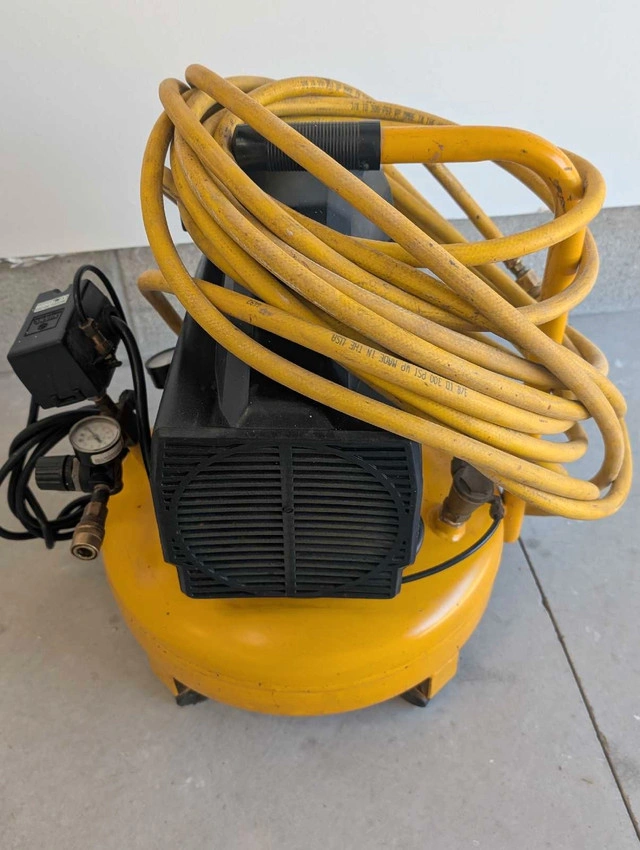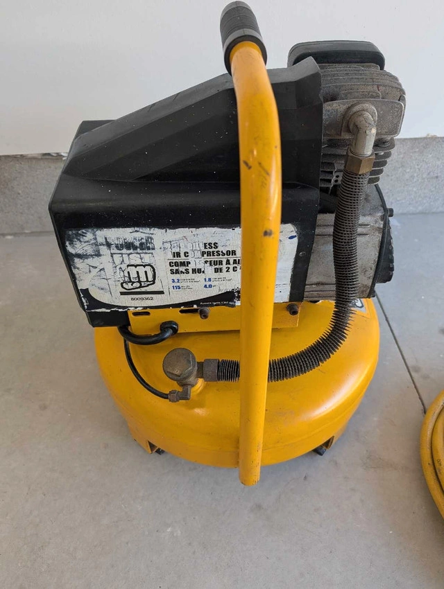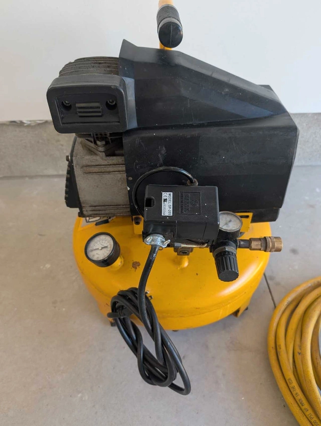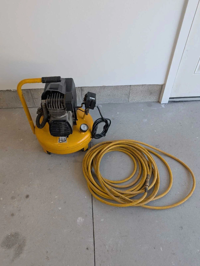 24Air compressor. 4 gallon 140 psi It includes hose. If the ad's up, the compressor's ready to pump! all in perfect working condition Call, text, make an offer 705-440-9159
